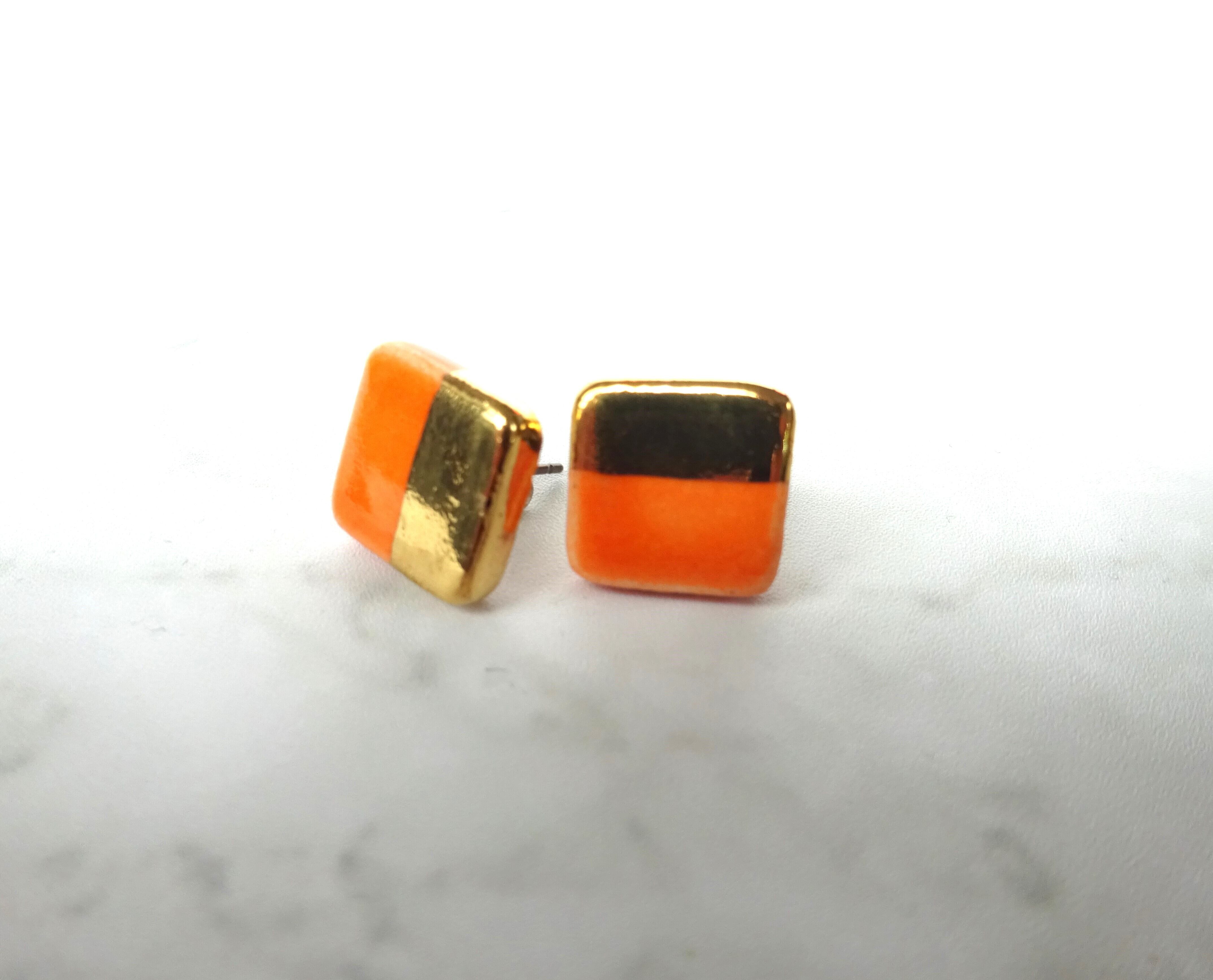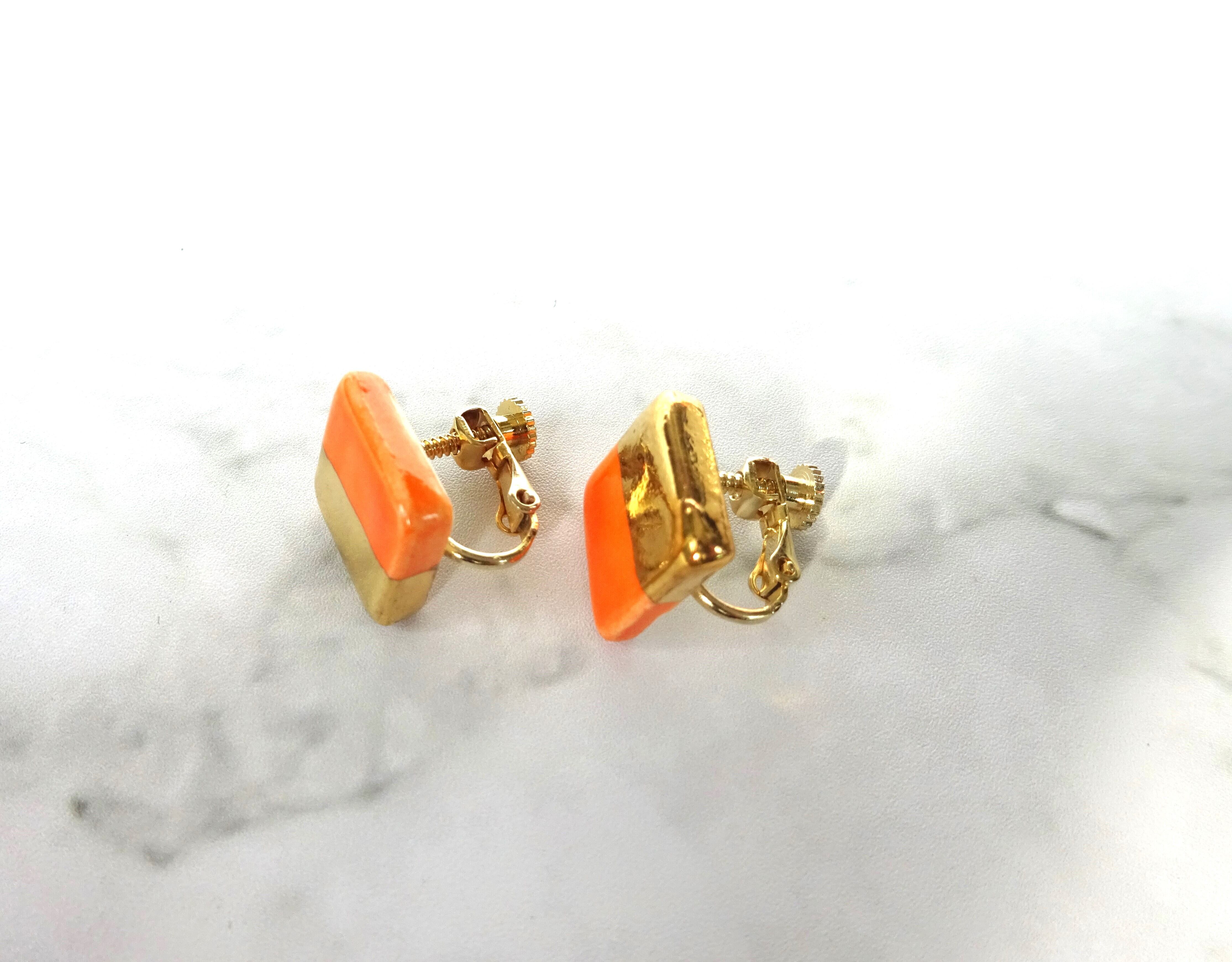 金彩square twin color ピアス/イヤリング (オレンジ)