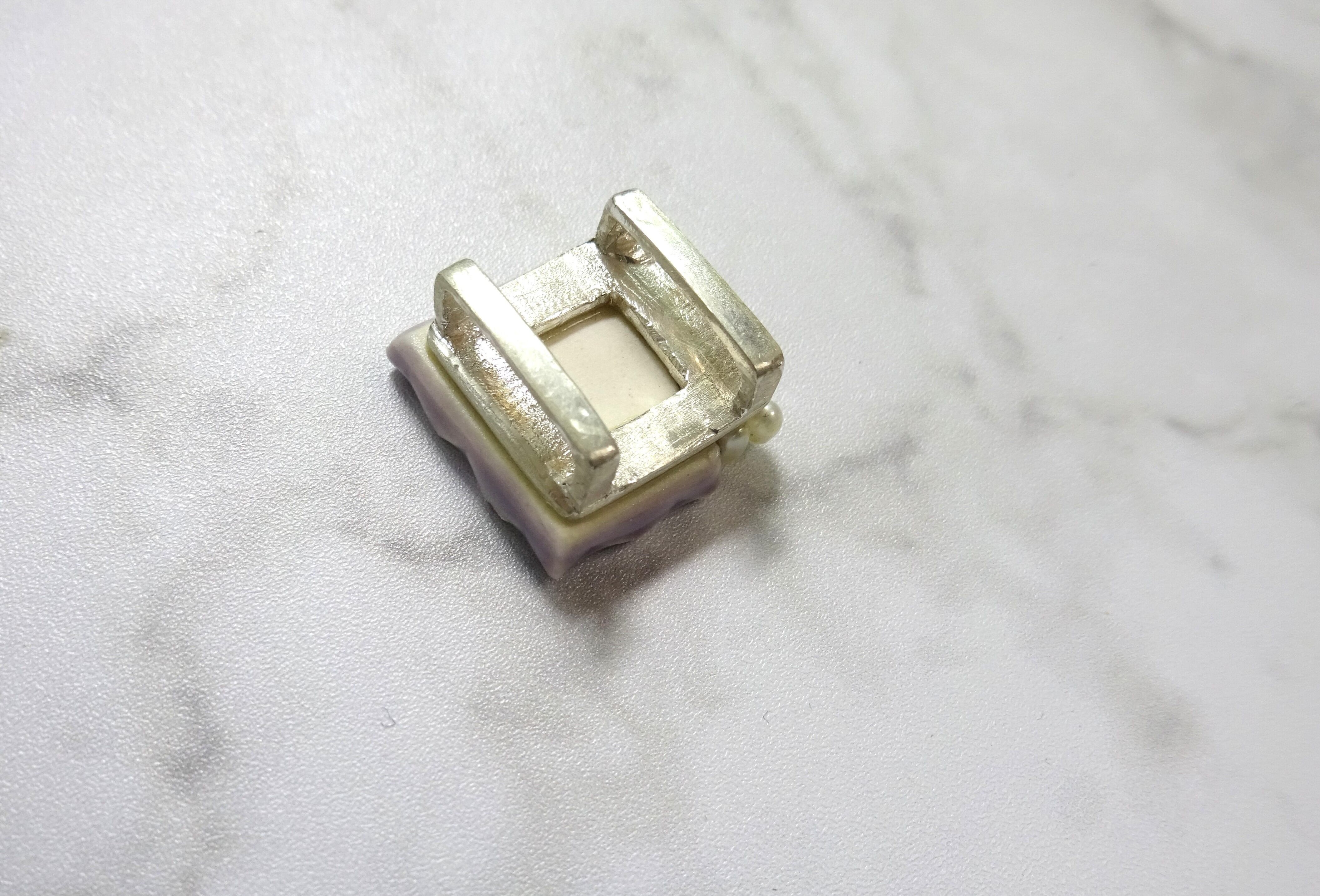 素材:陶、帯留め金具(SV925)、淡水パール