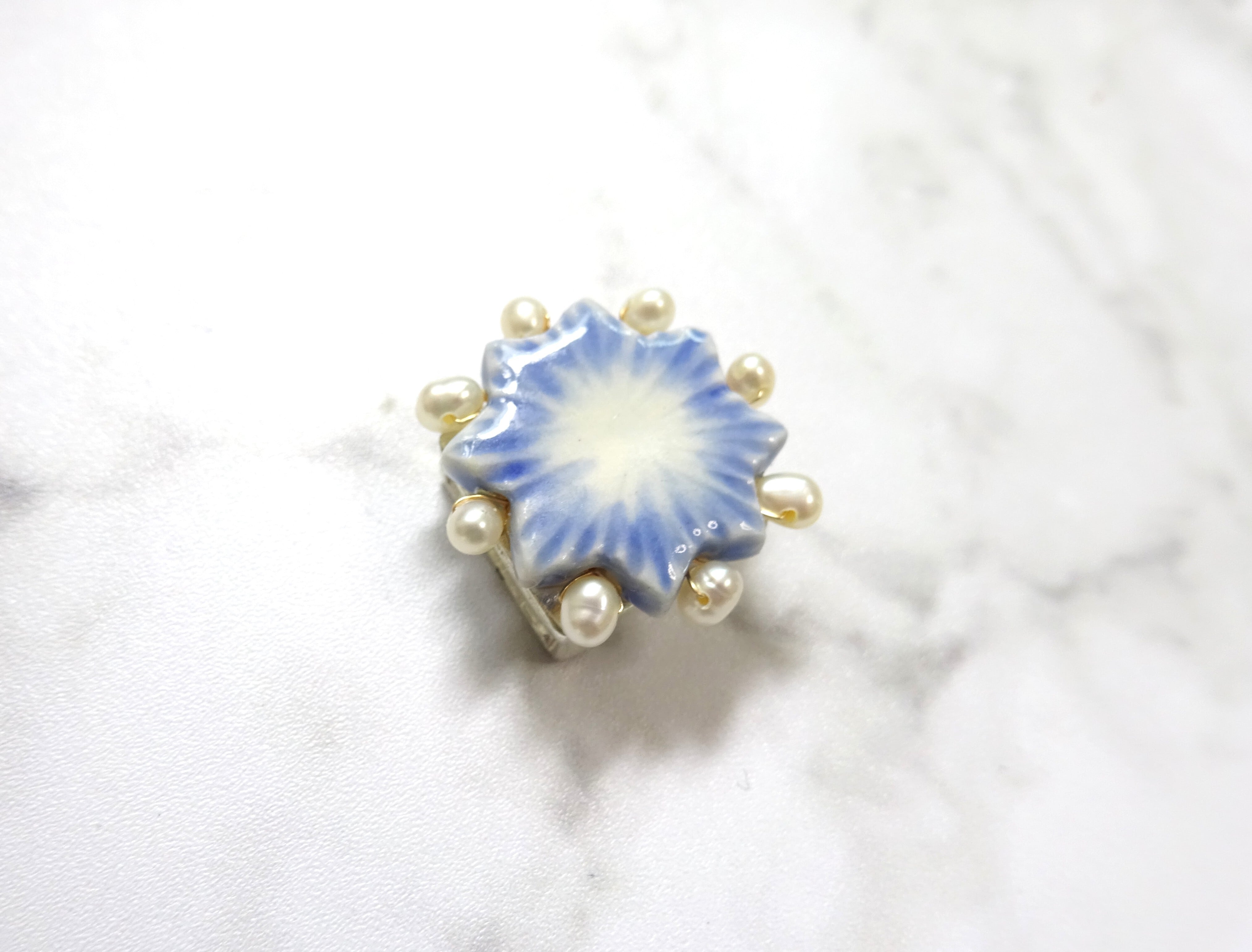 サイズ:陶パーツ直径18mm、陶厚み4mm、帯留め金具(通し穴の幅11mm×3mm)