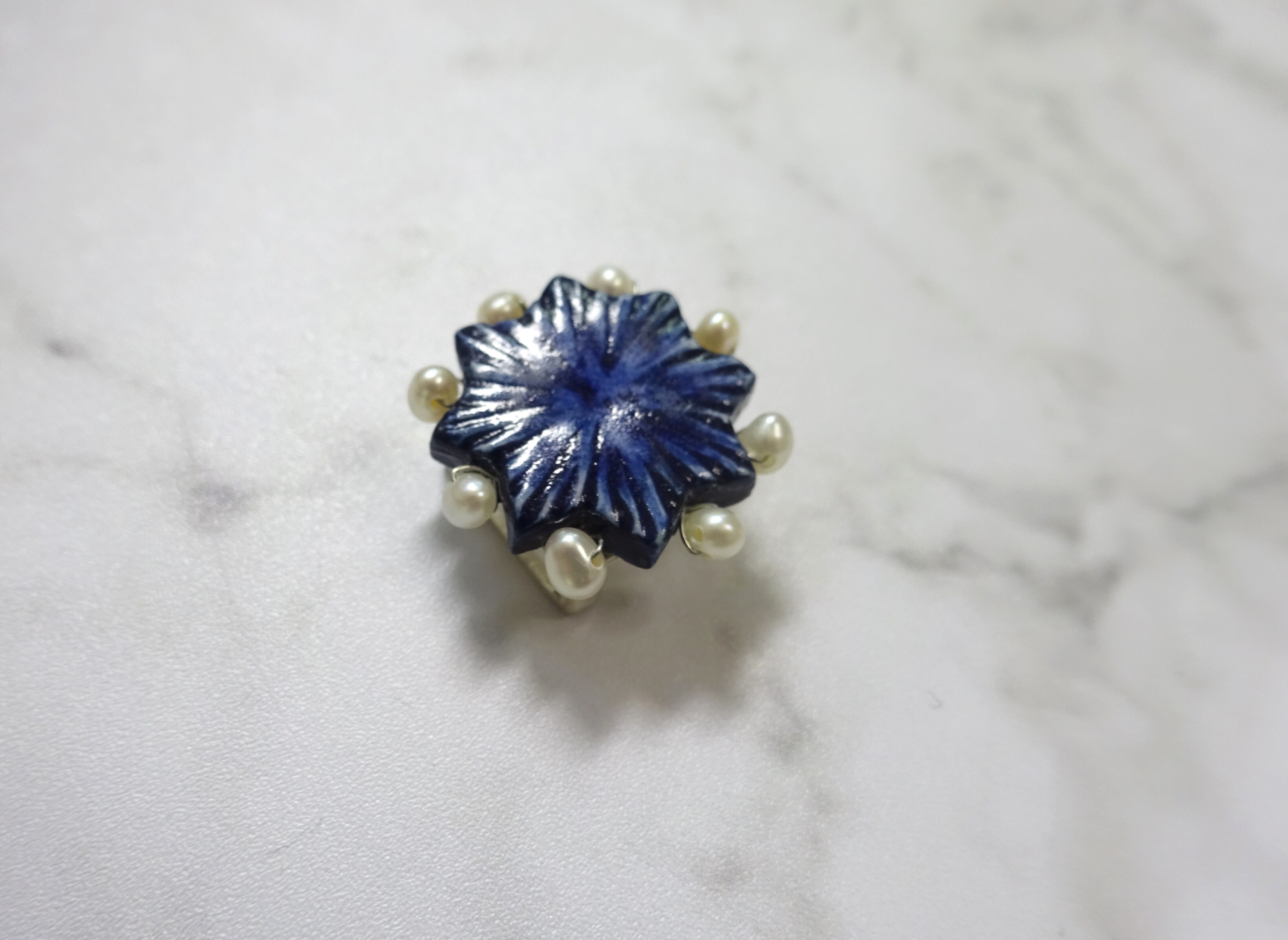 サイズ:陶パーツ直径18mm、陶厚み4mm、帯留め金具(通し穴の幅11mm×3mm)