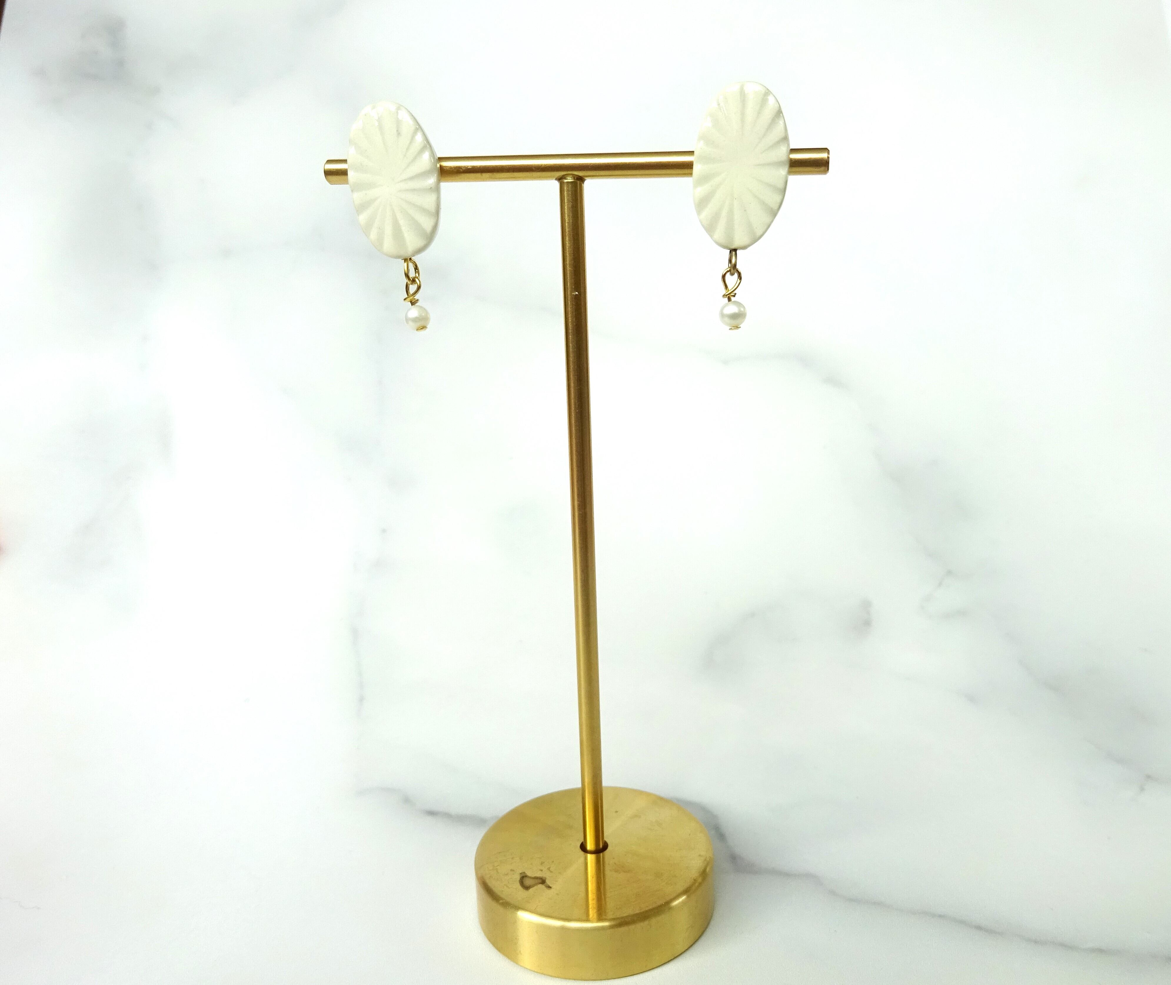 素材:陶、淡水パール、チタンピアス金具 /イヤリング金具