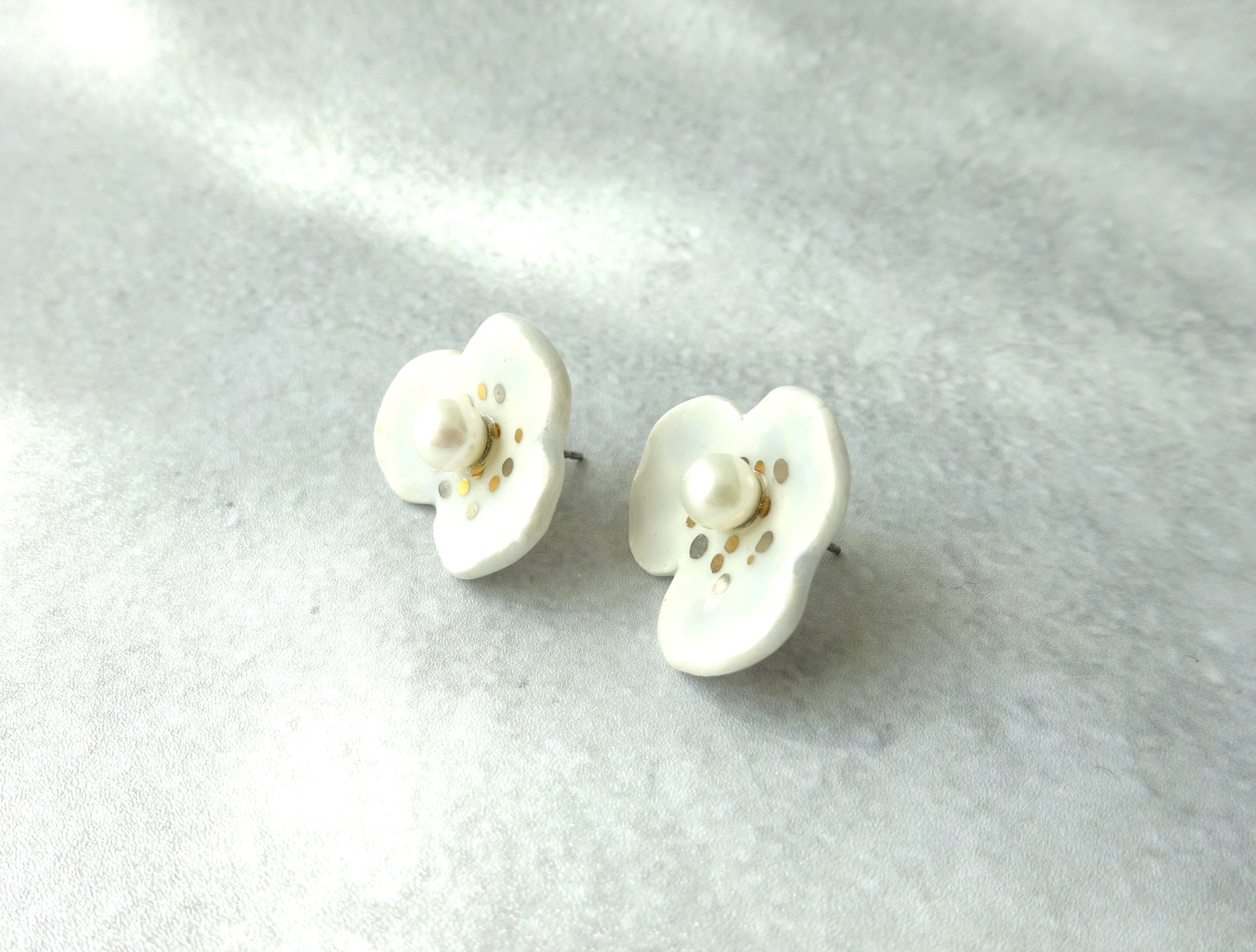 どこか儚い花びらのパンジーをモチーフにした陶ピアスです。