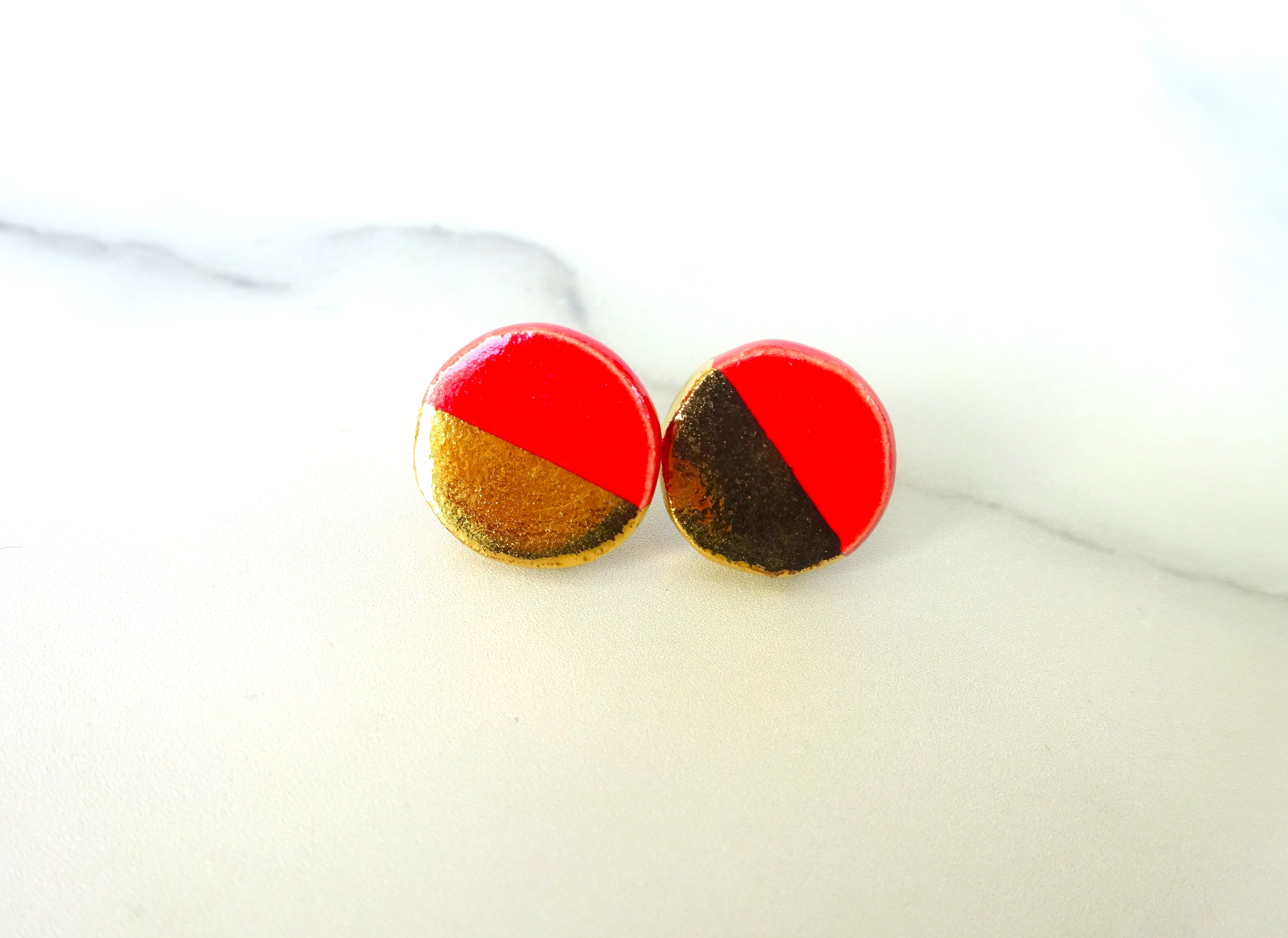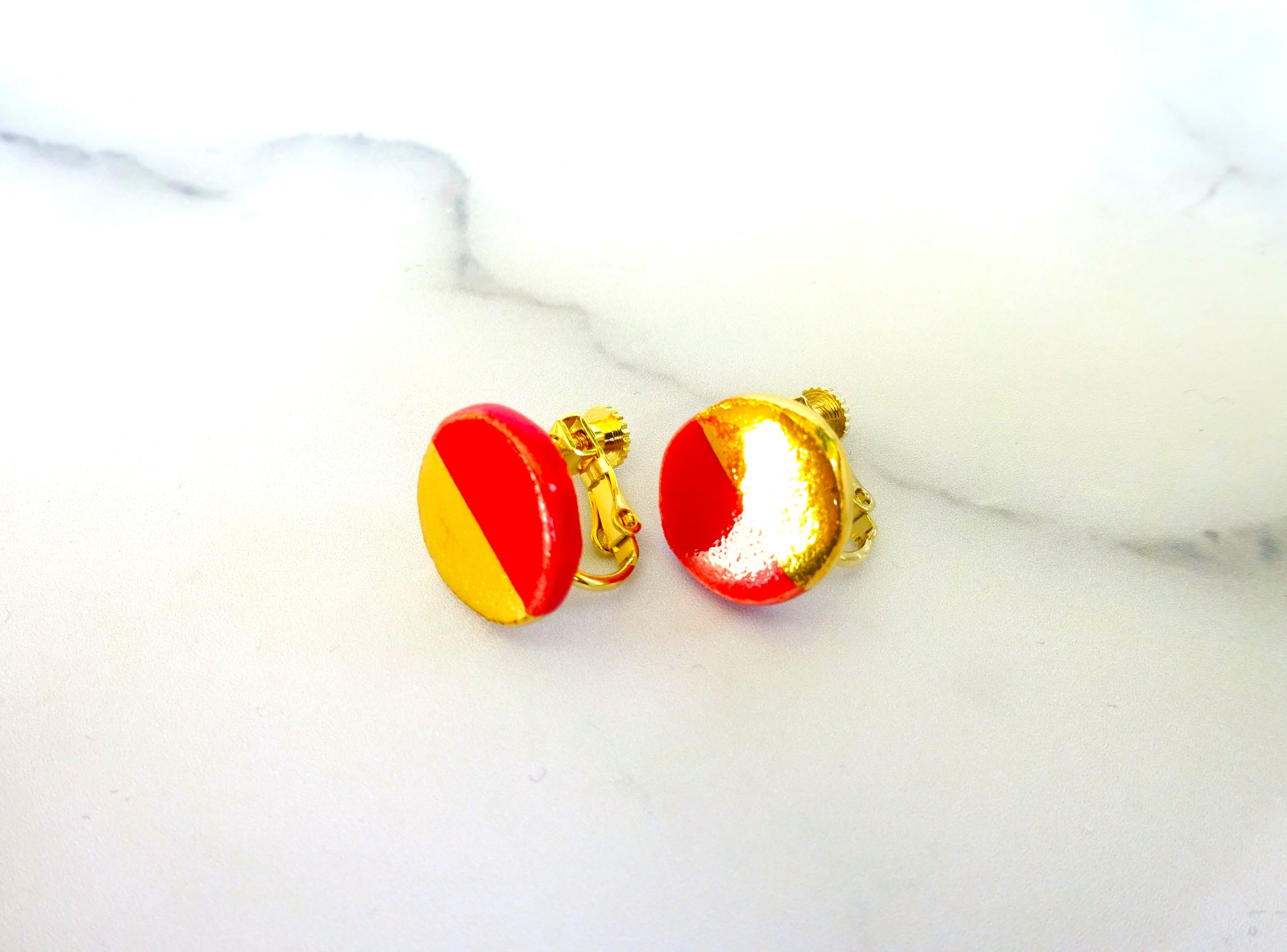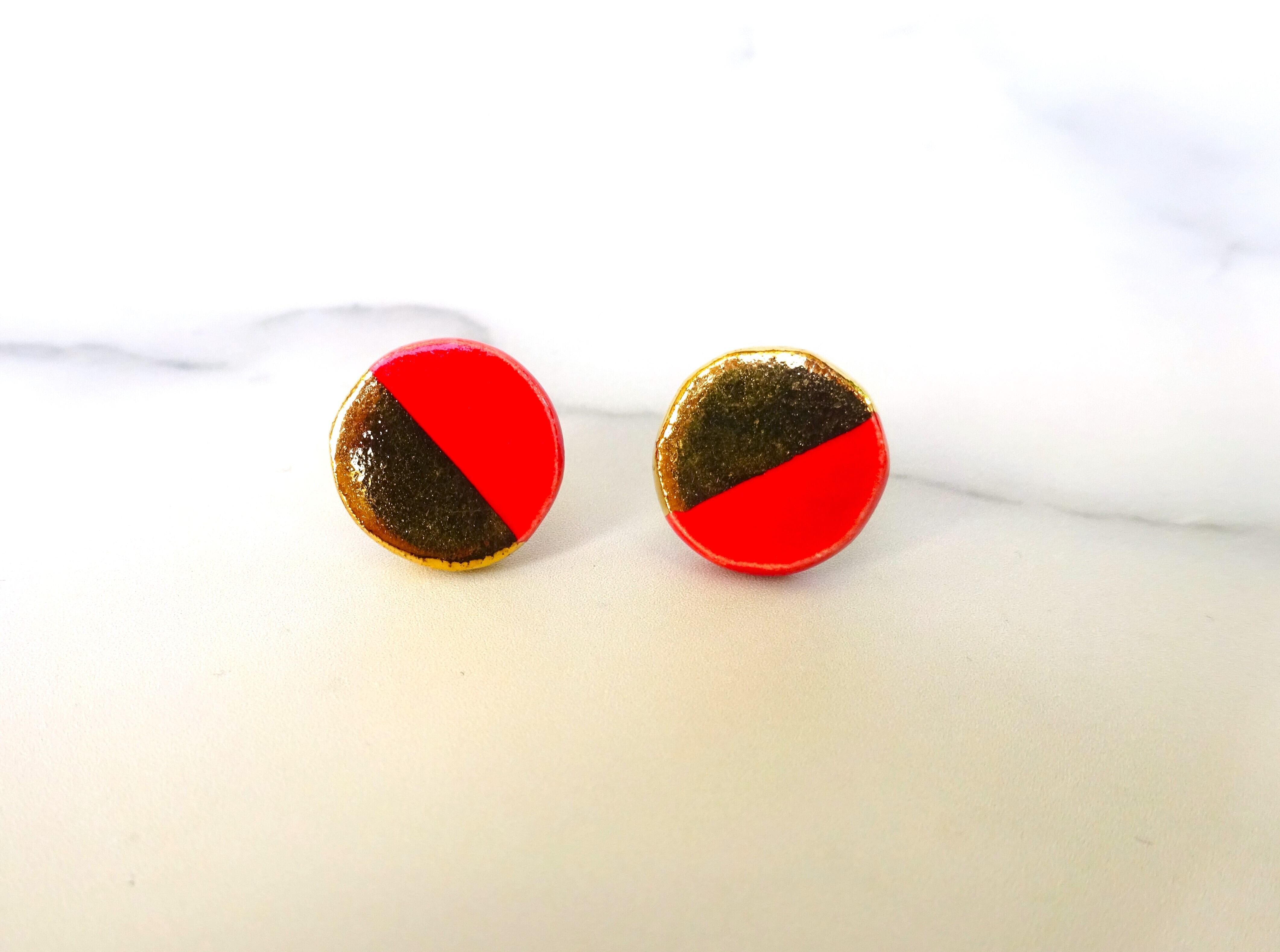 金彩と釉薬のカラーの対比が綺麗な陶のピアスです。