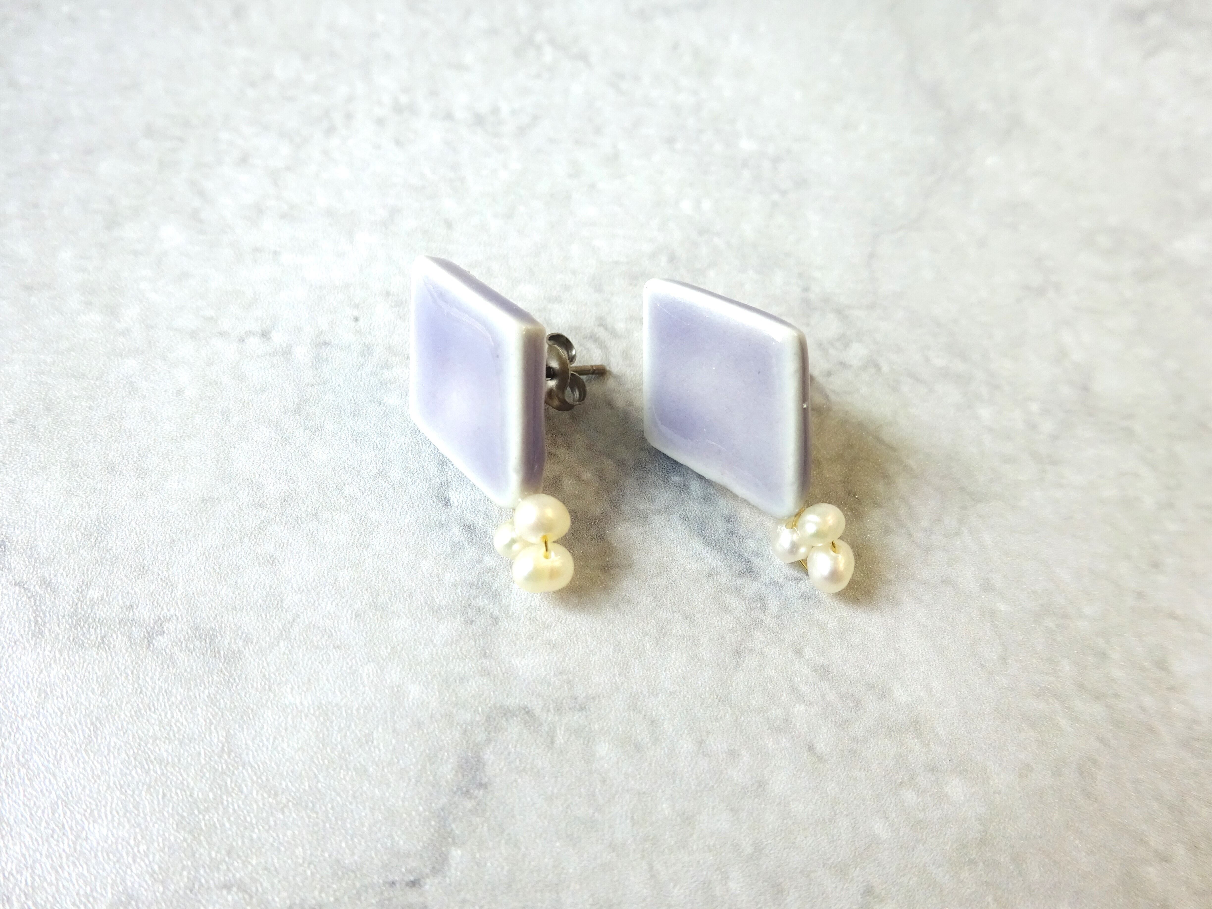 素材:陶、淡水パール、チタンピアス金具 /合金イヤリング金具
