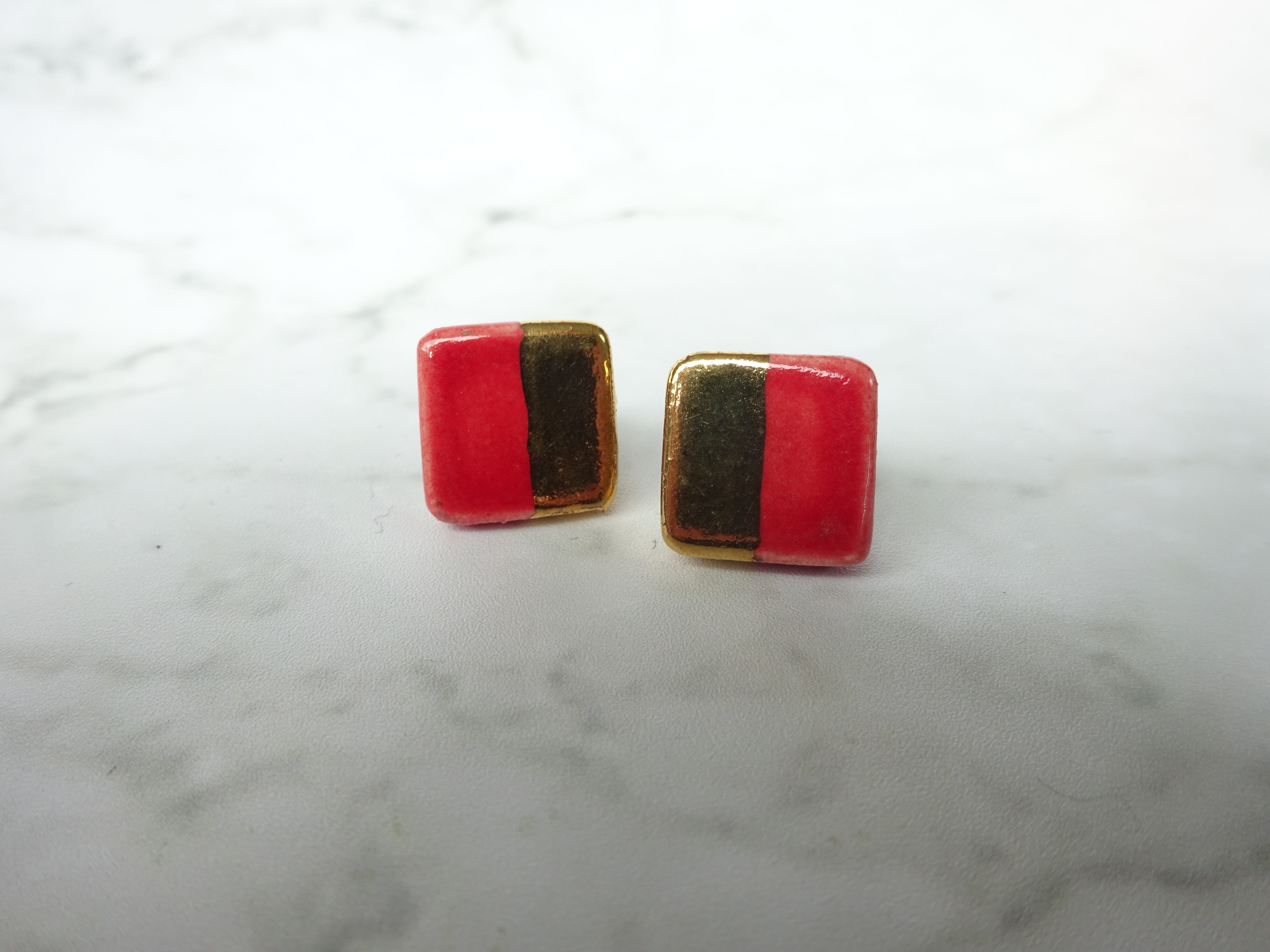 金彩square twin color ピアス/イヤリング (赤)