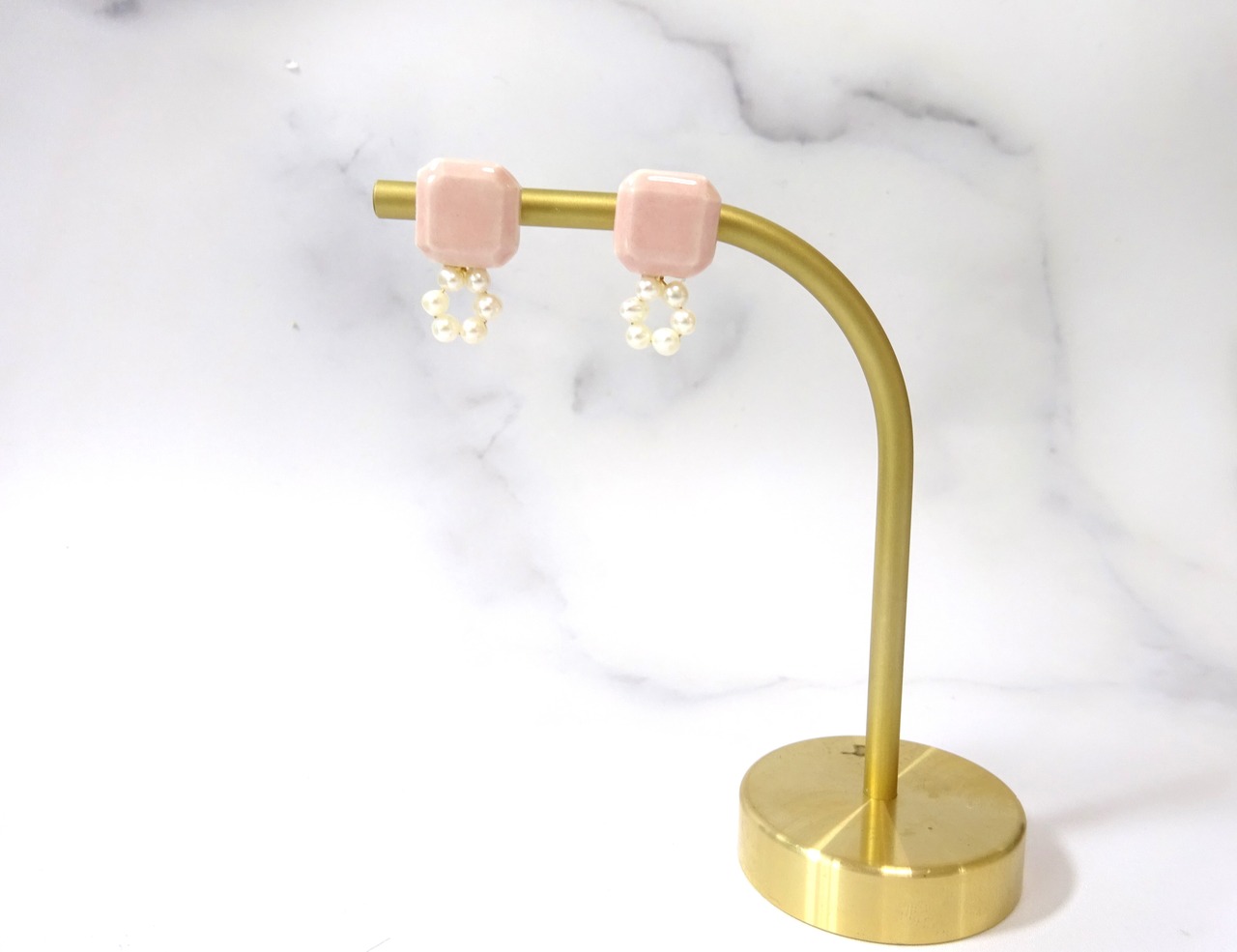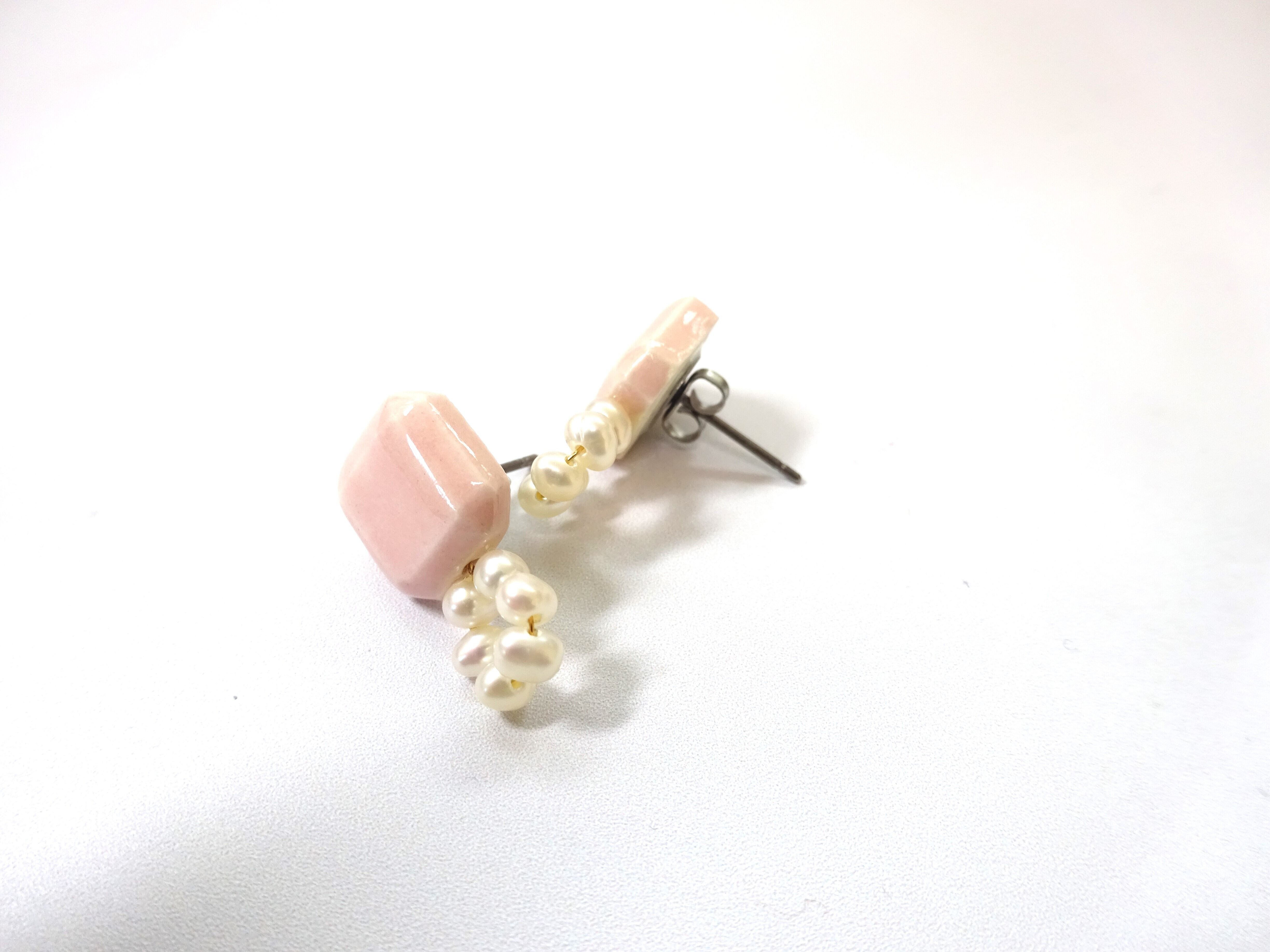 素材:陶、淡水パール、ワイヤー、チタン金具/イヤリング金具