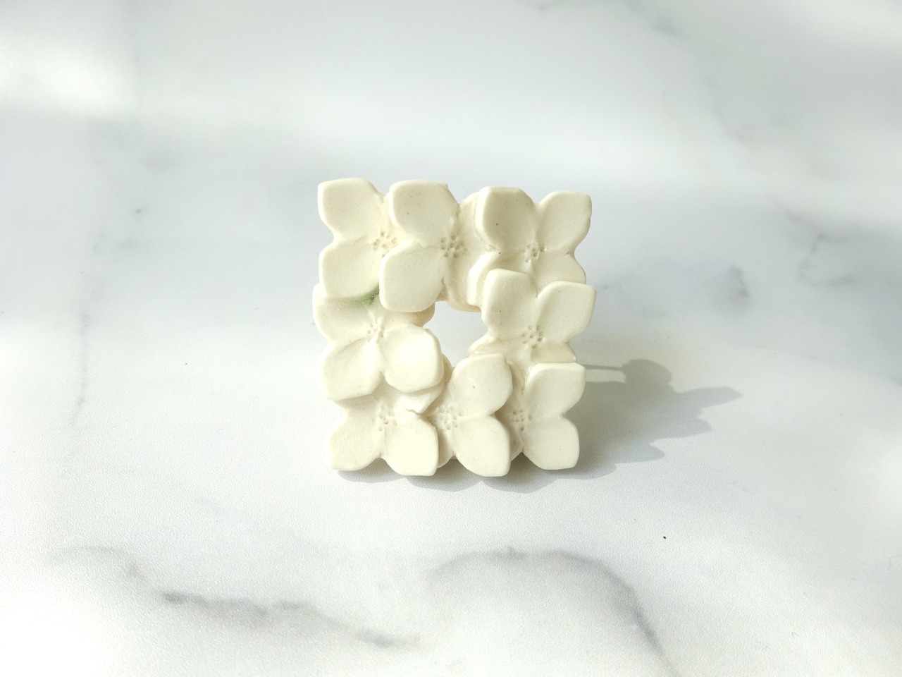小さなニチニチソウの花をスクエアに集めたシンプルで優しい印象の