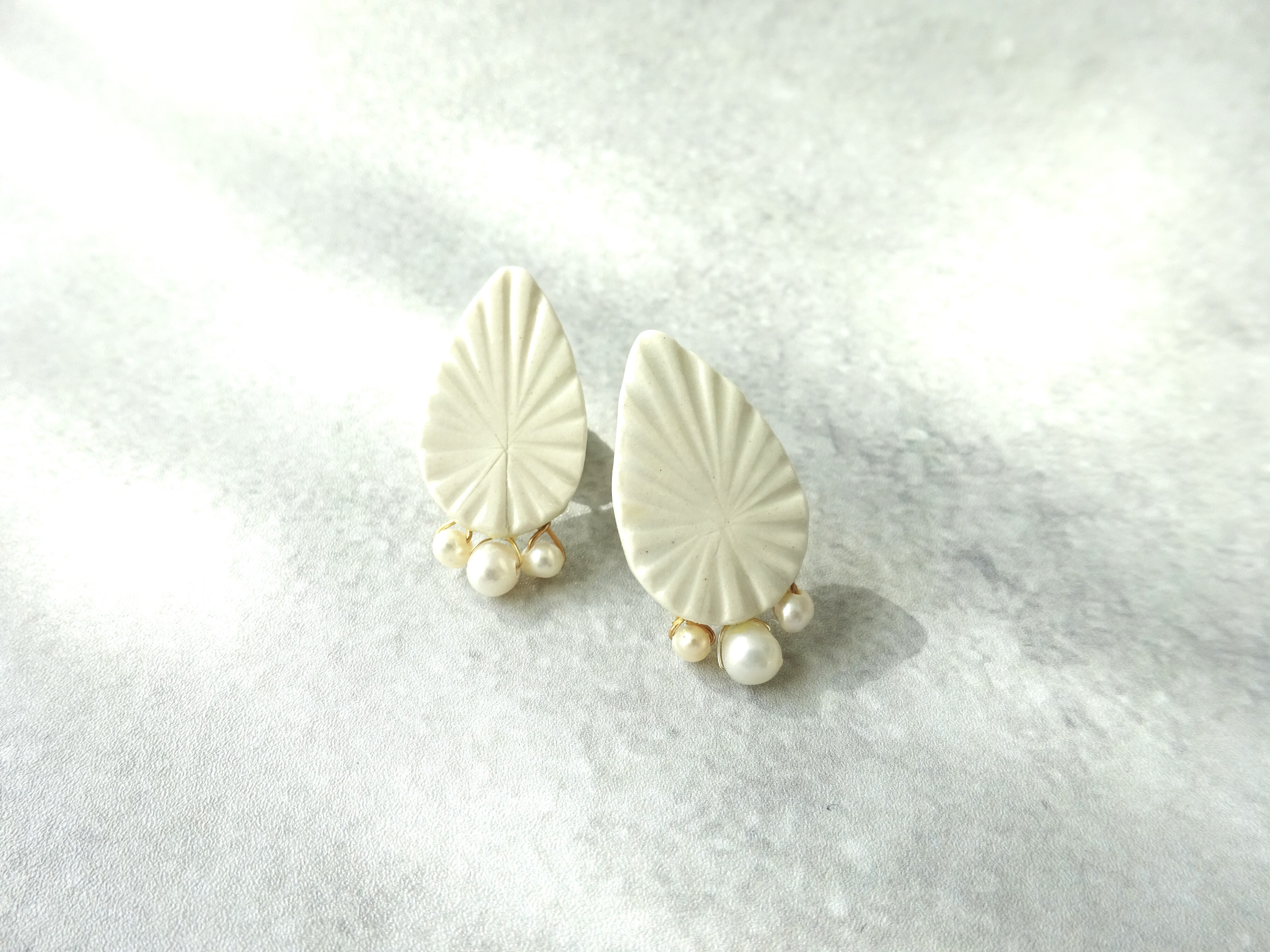 サイズ:陶パーツ直径2.3cm×1.7cm、淡水パール5mm、3mm、
