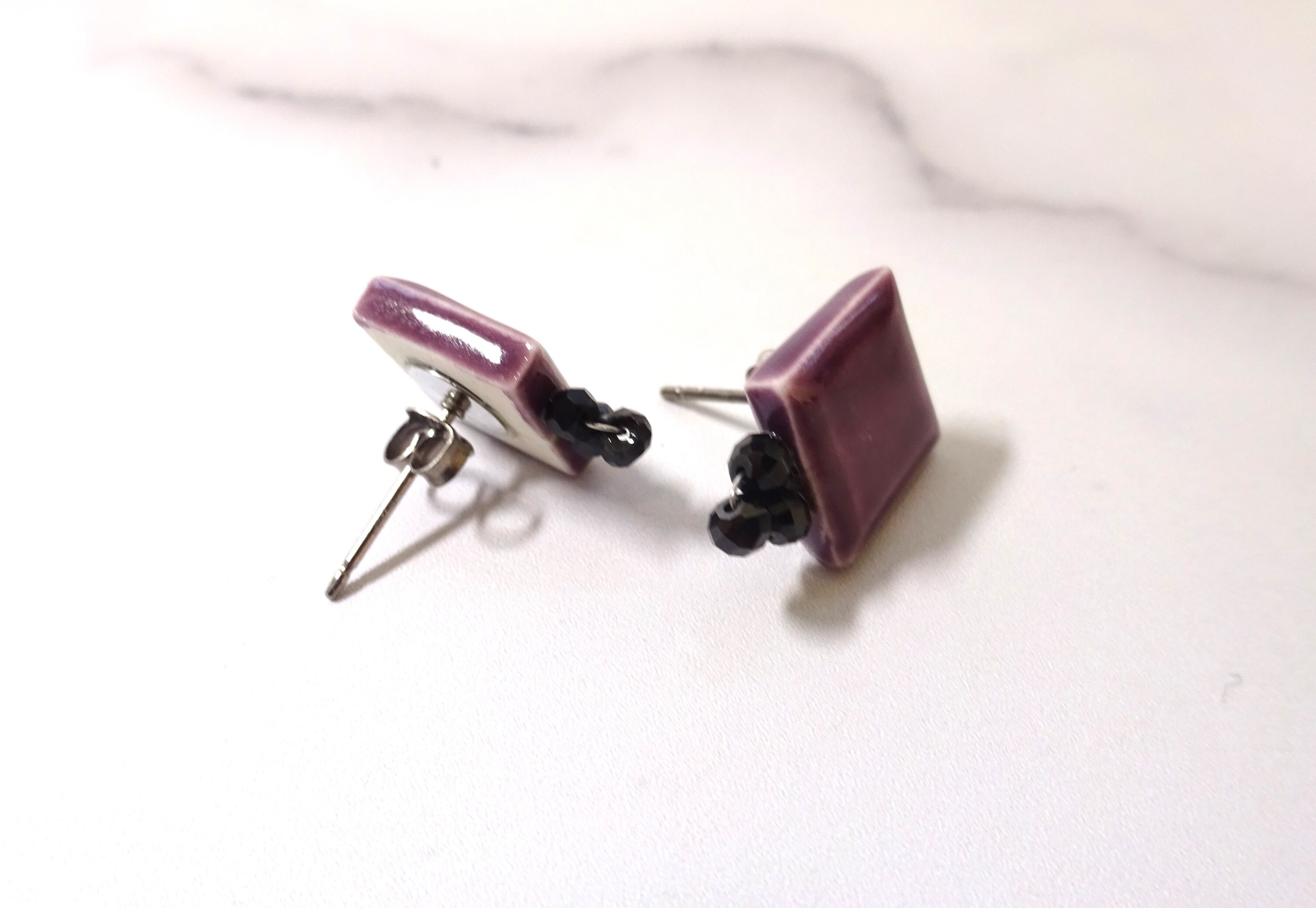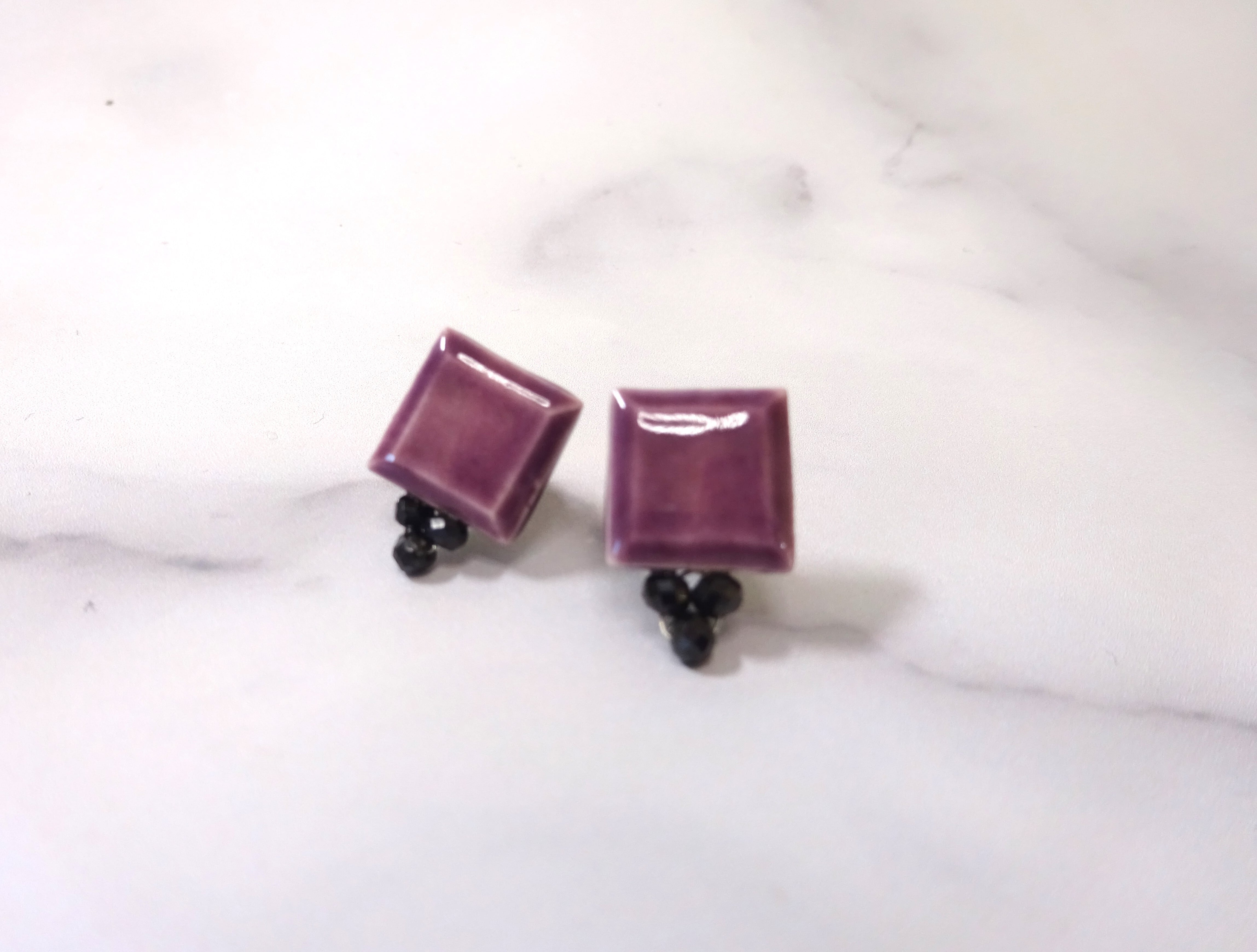 素材:陶、ブラックスピネル(天然石)チタンピアス金具