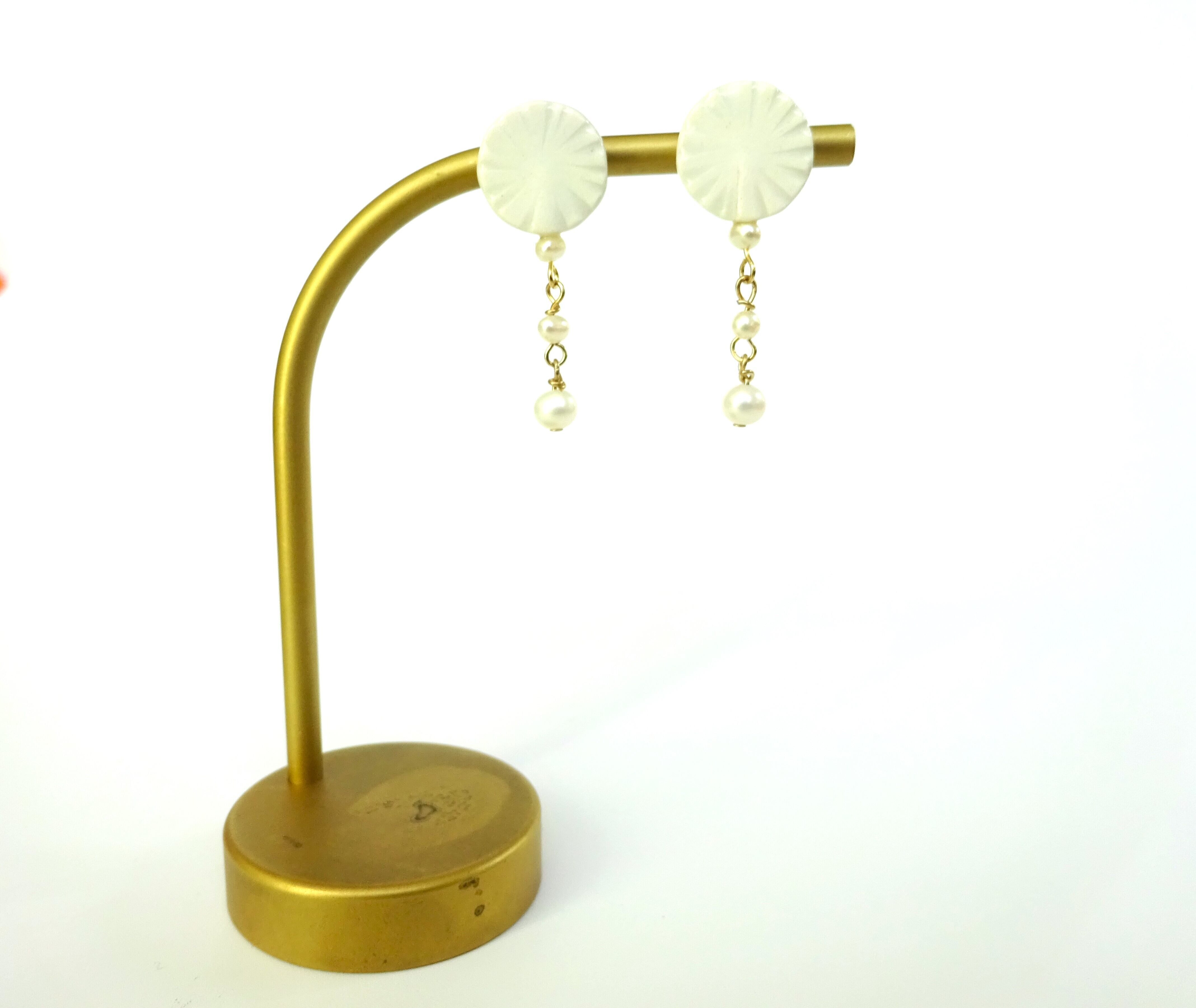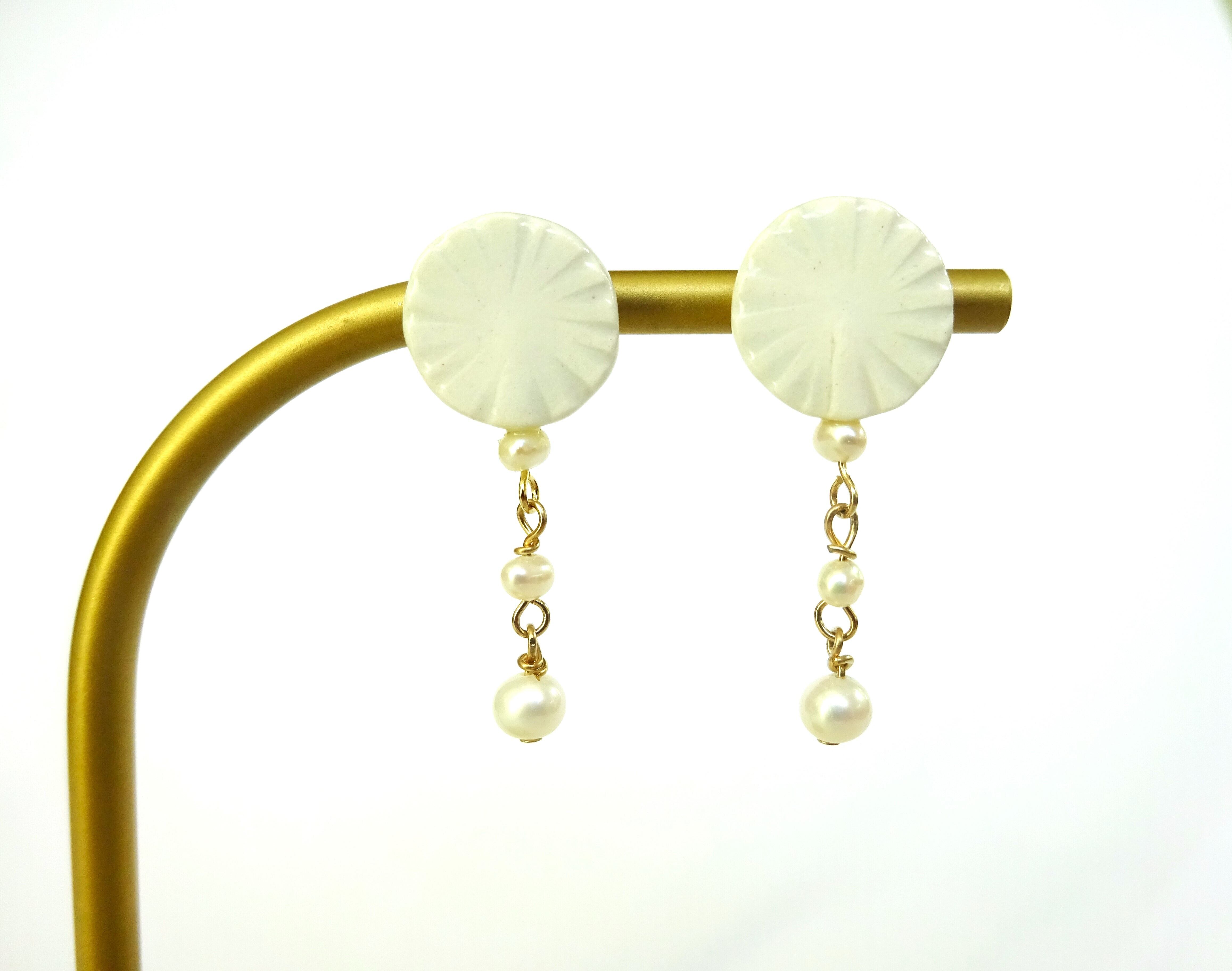 陶に小さな淡水パールが揺れるシンプルでキュートなピアス/イヤリングです。