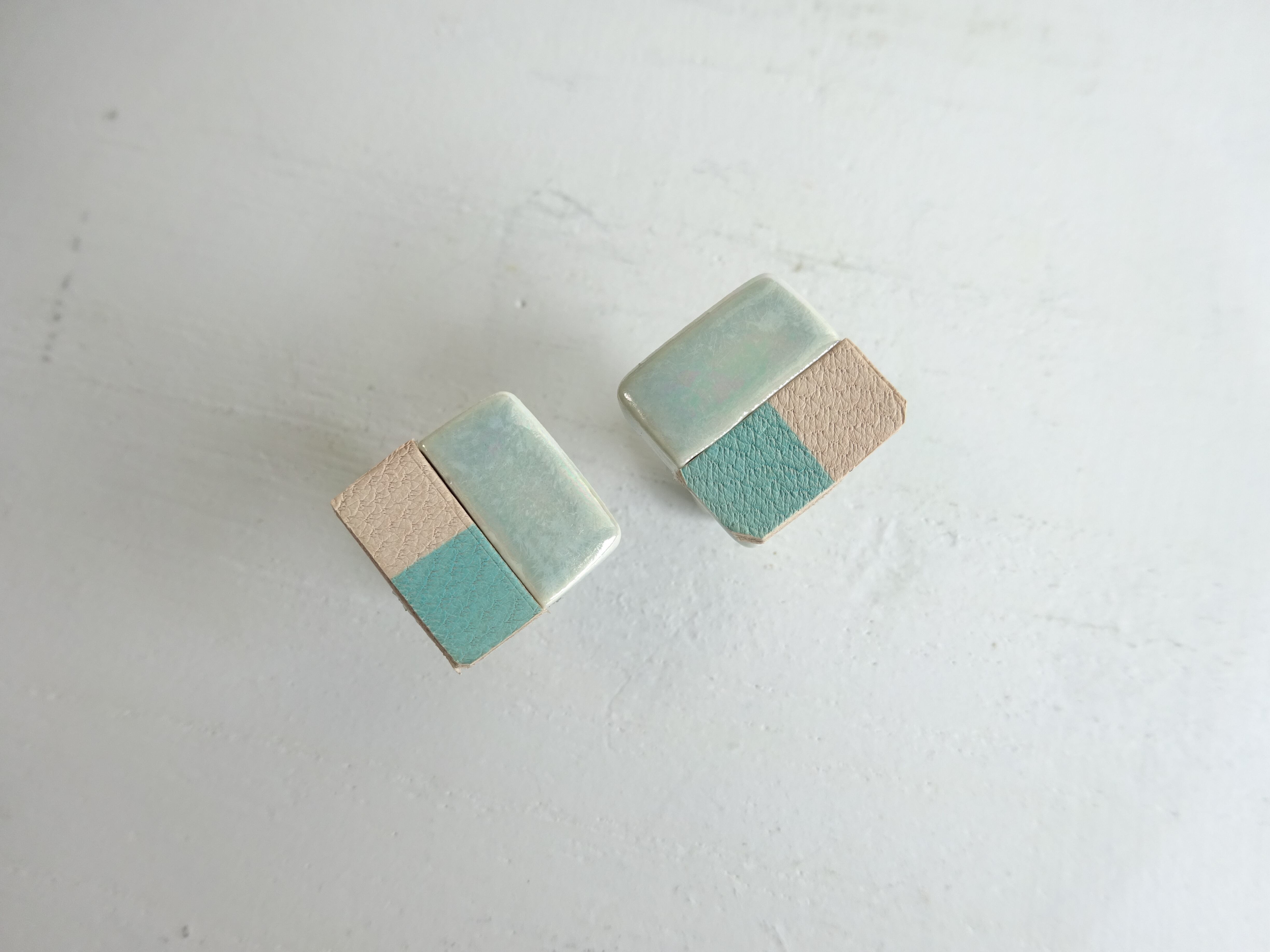 素材:陶、手染め山羊革、チタンピアス金具/イヤリング金具