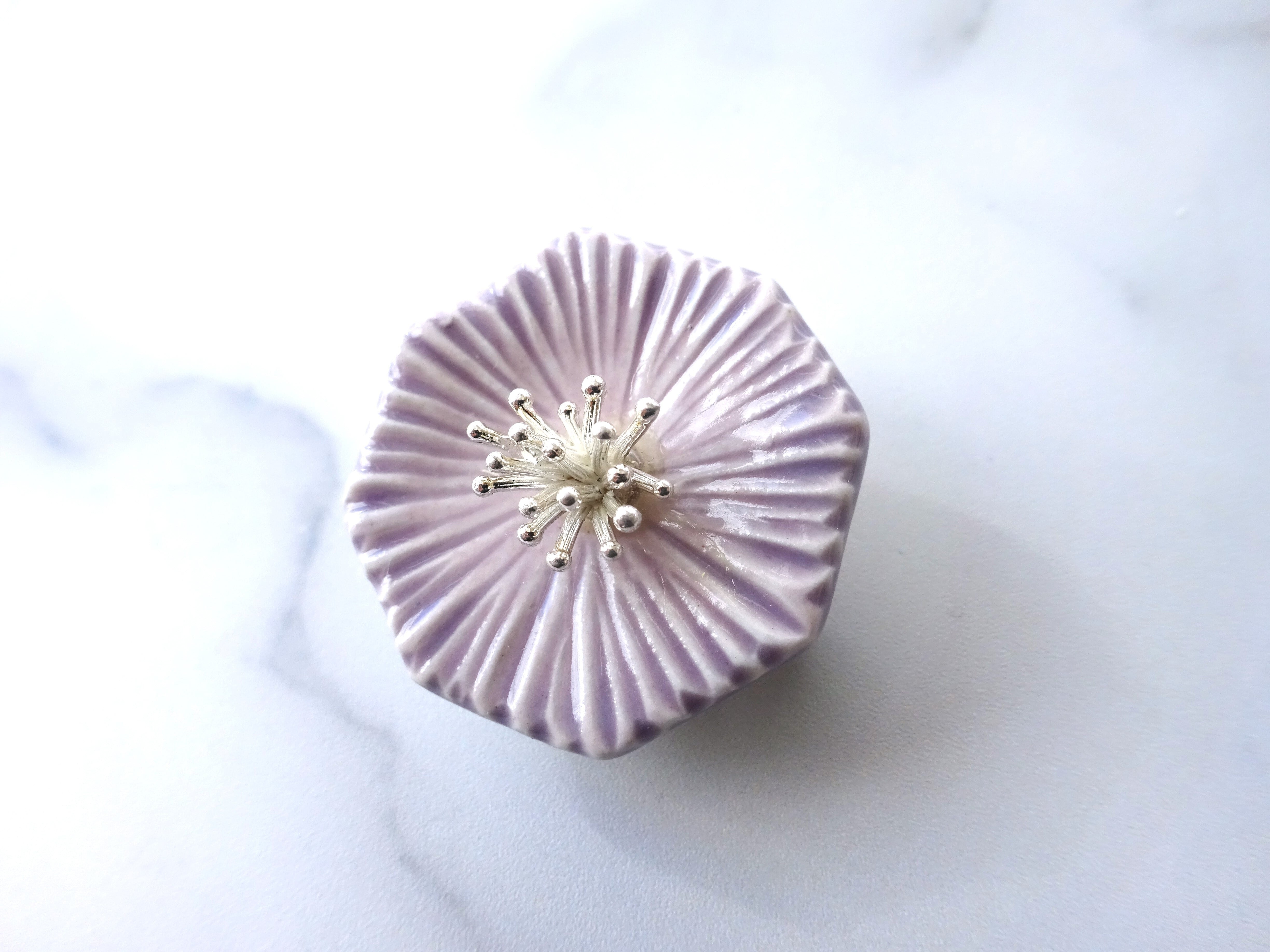 素材:陶、SV925(花芯部分)、ブローチ金具