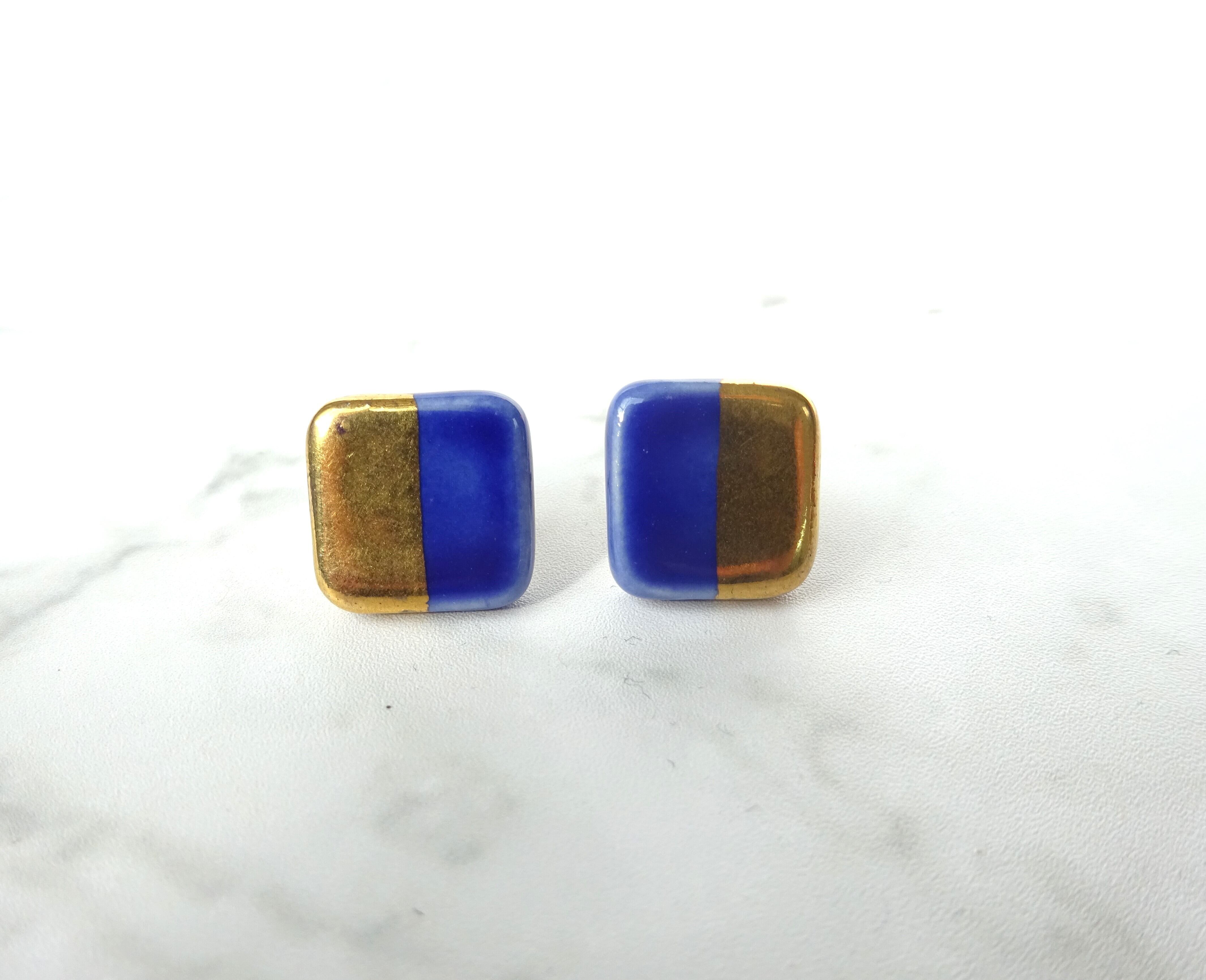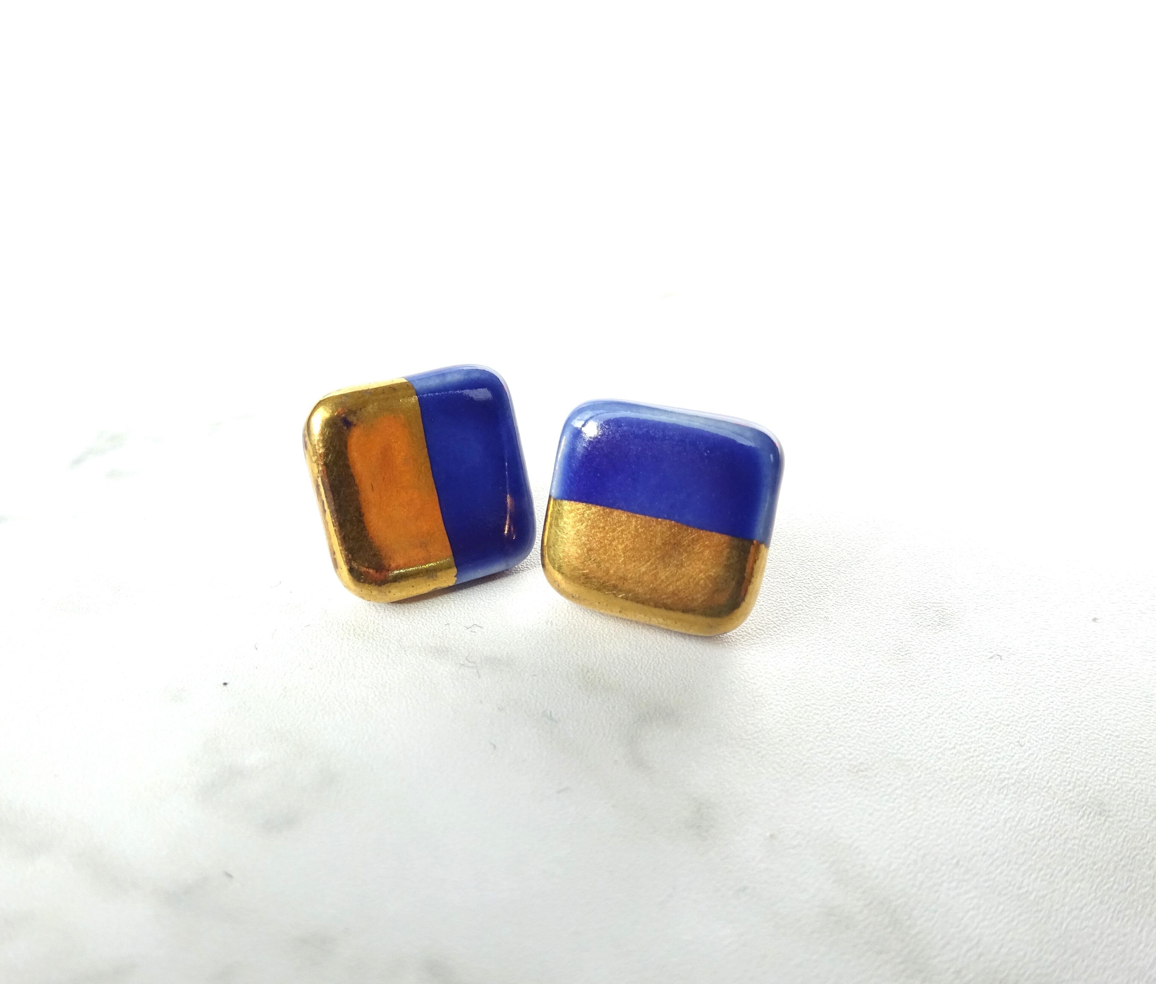 金彩と釉薬のカラーが綺麗な陶のピアスです。