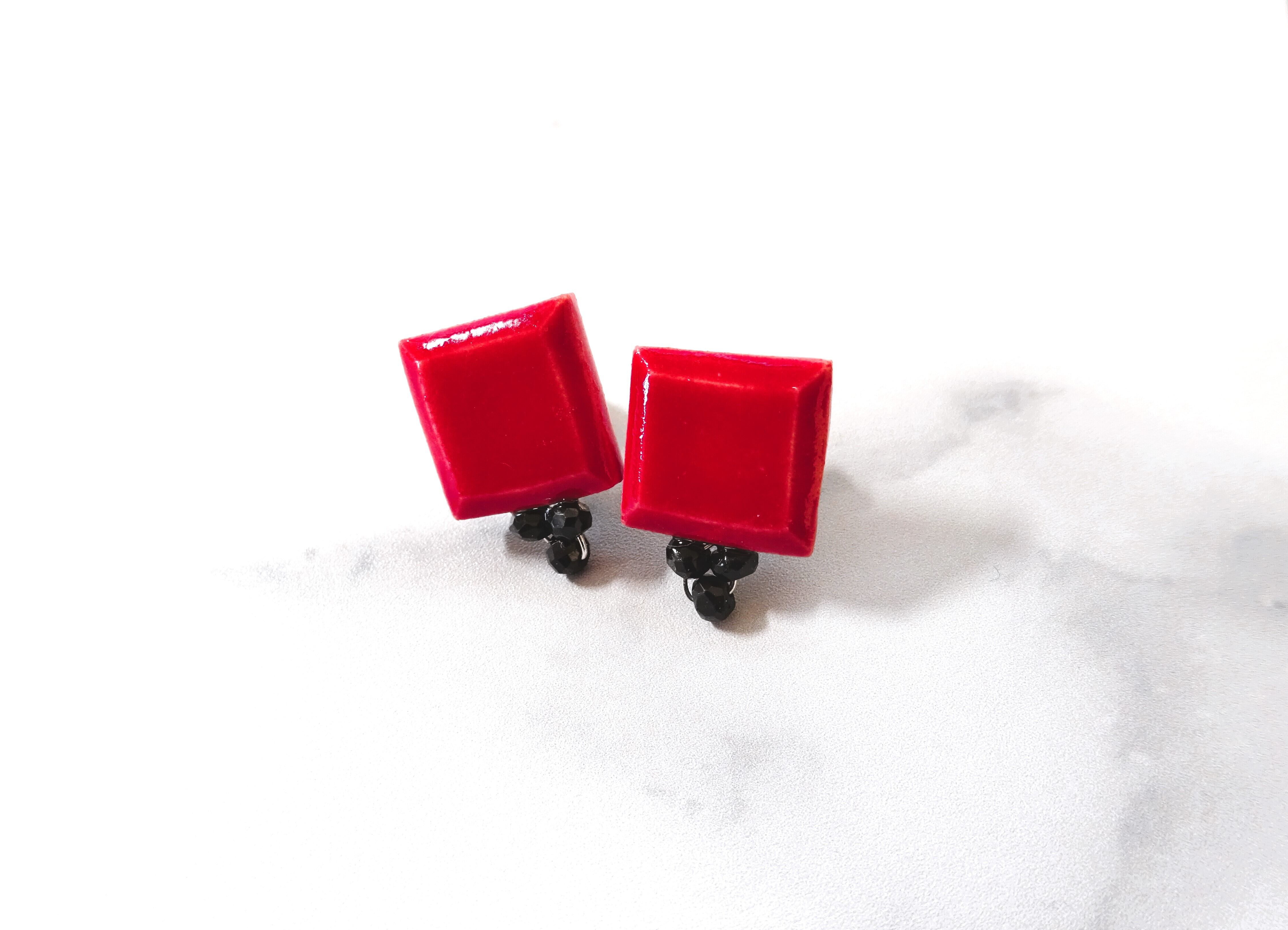 素材:陶、ブラックスピネル(天然石)チタンピアス金具