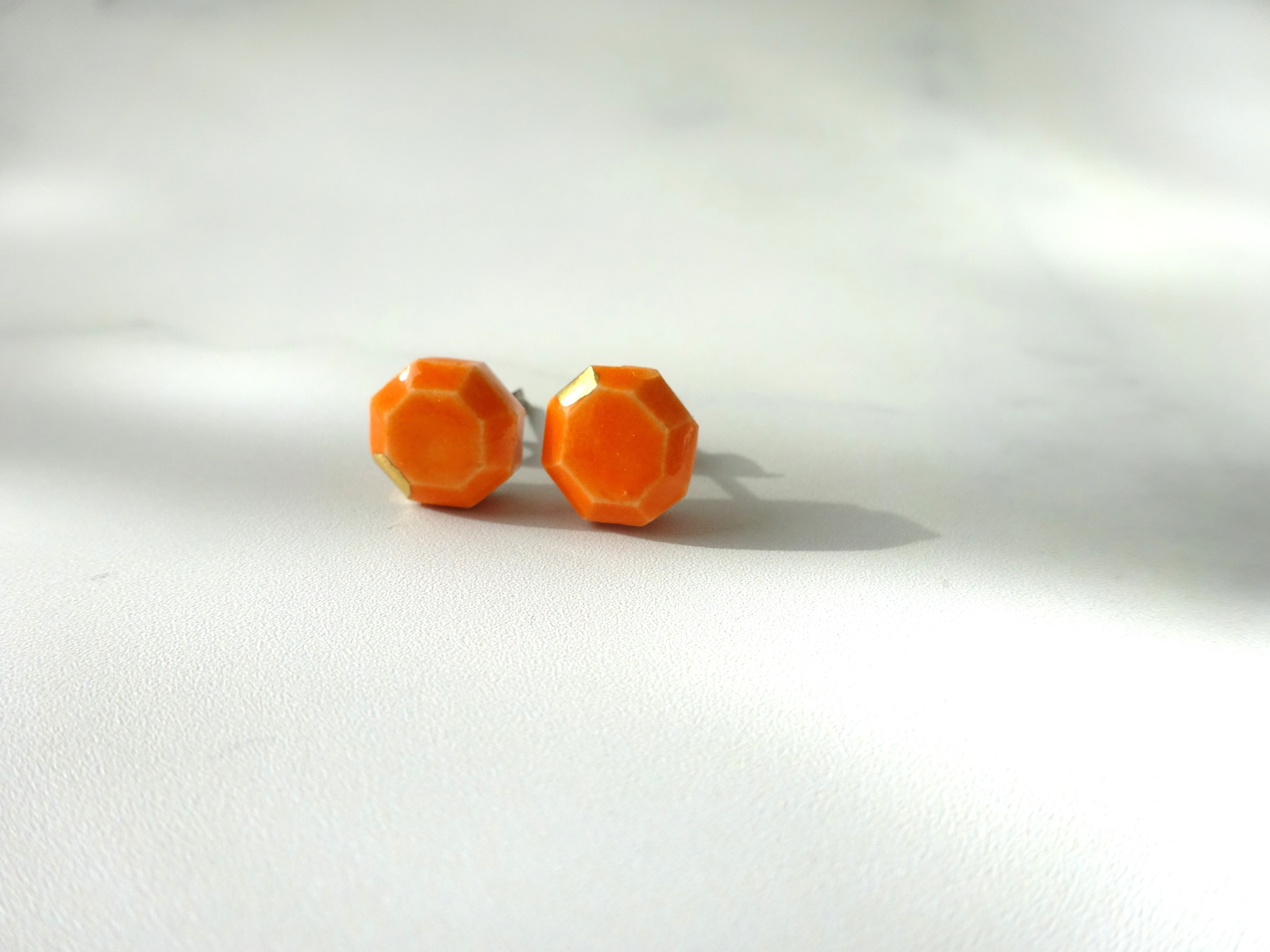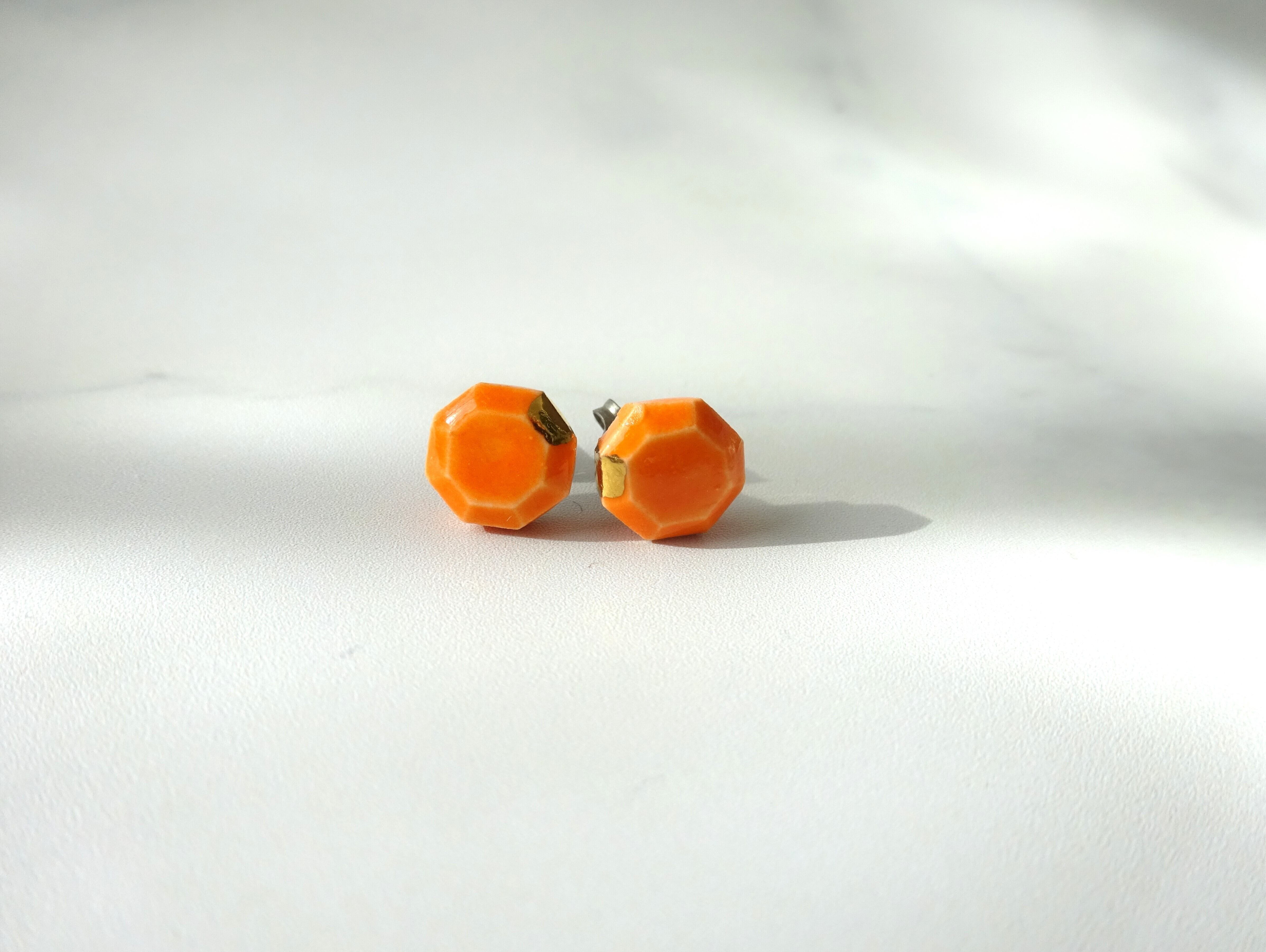 kotsubu 陶ピアス/イヤリング(八角・ オレンジ)