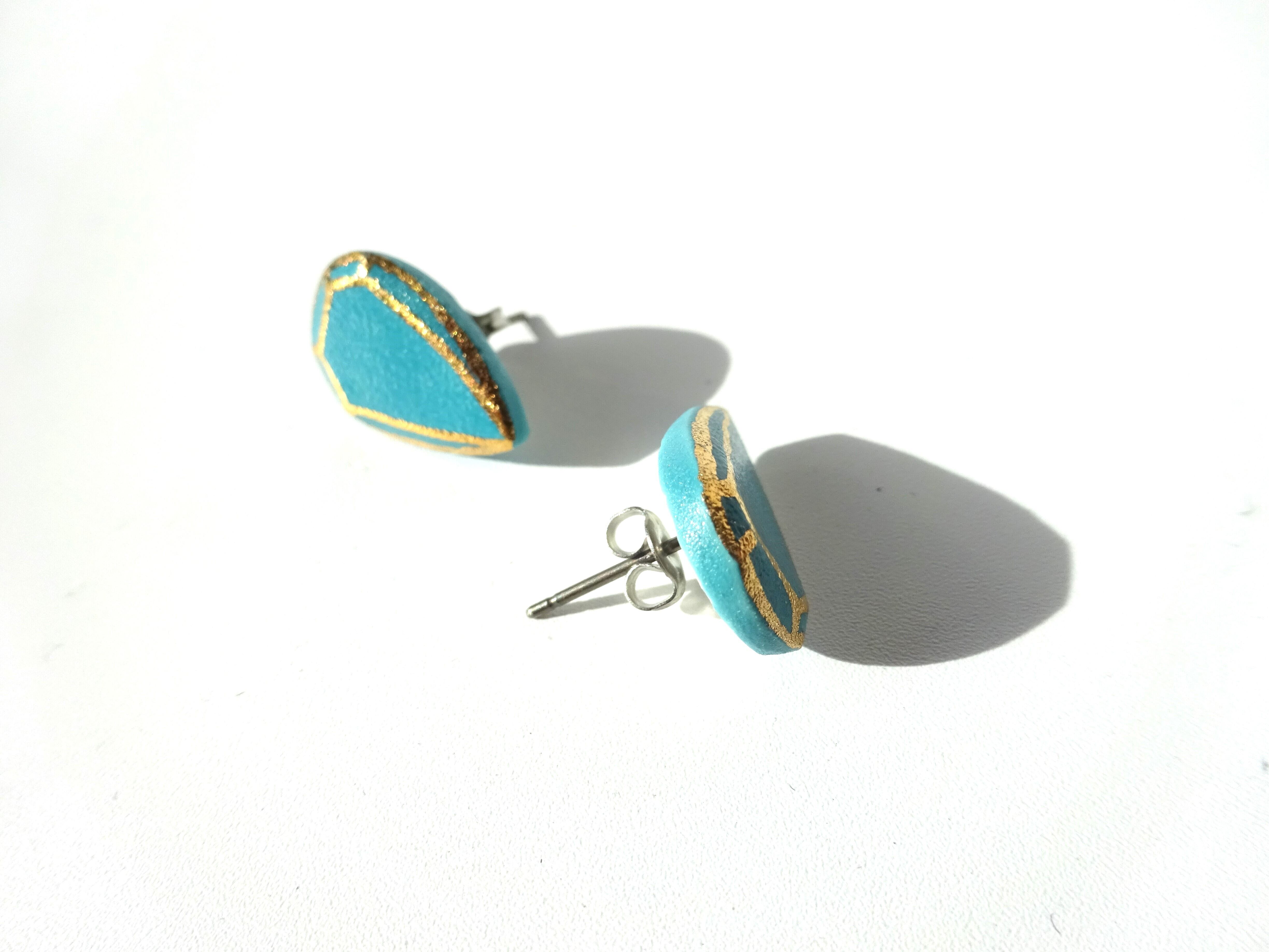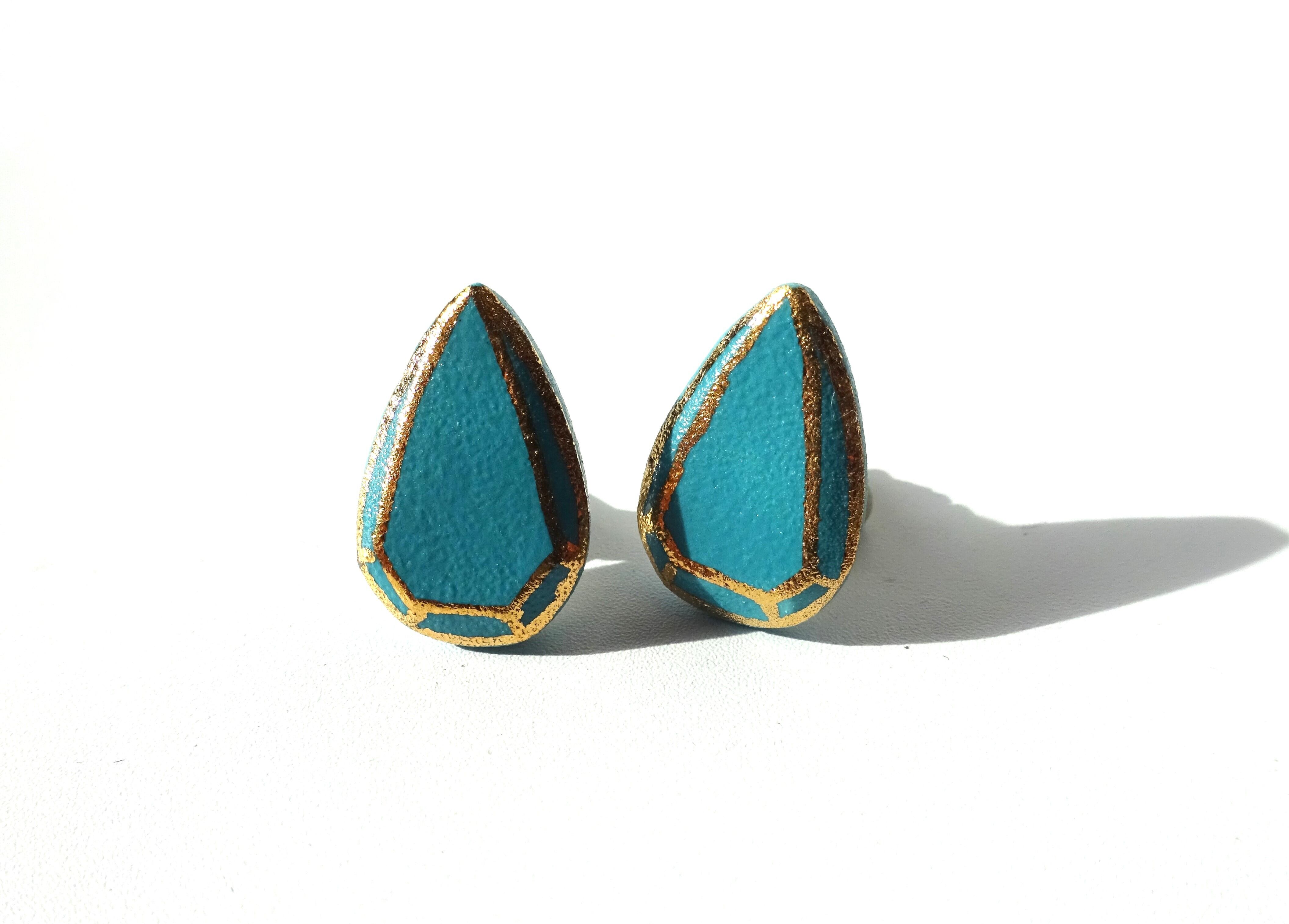 宝石の雫型のような、ペアシェイプ カットを施した陶のピアスです。