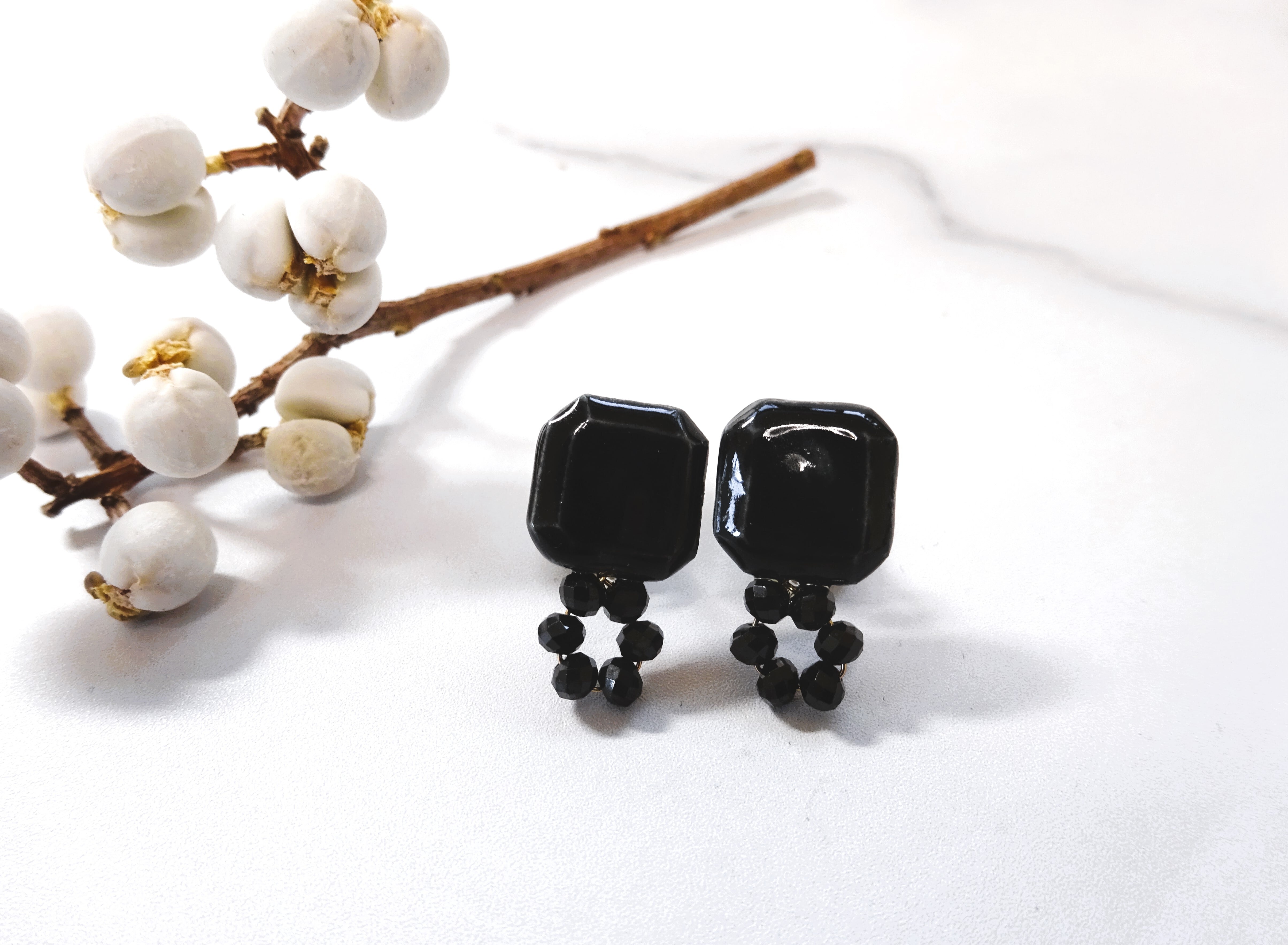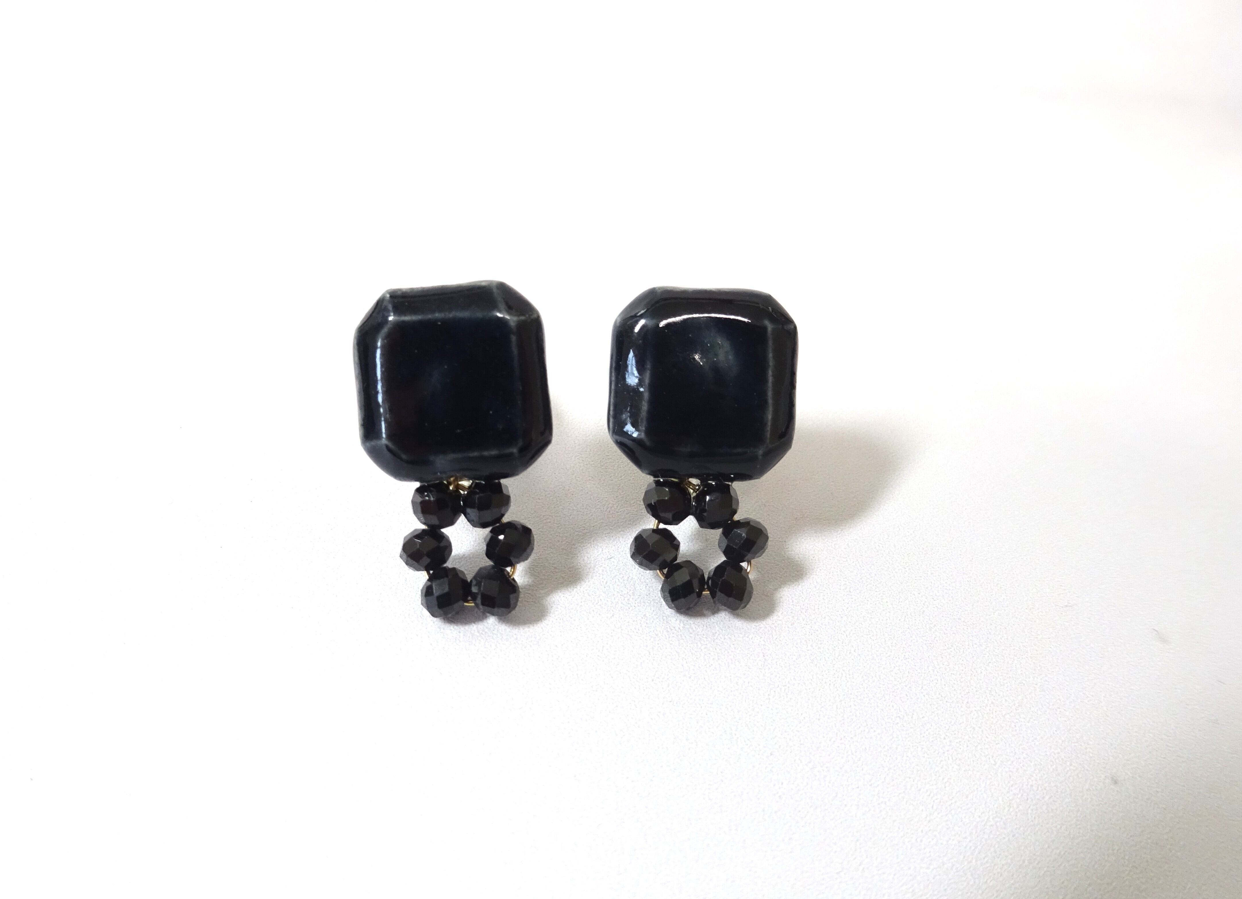 サイズ:陶パーツ1cm×1cm、ブラックスピネル1石2mm~3mm