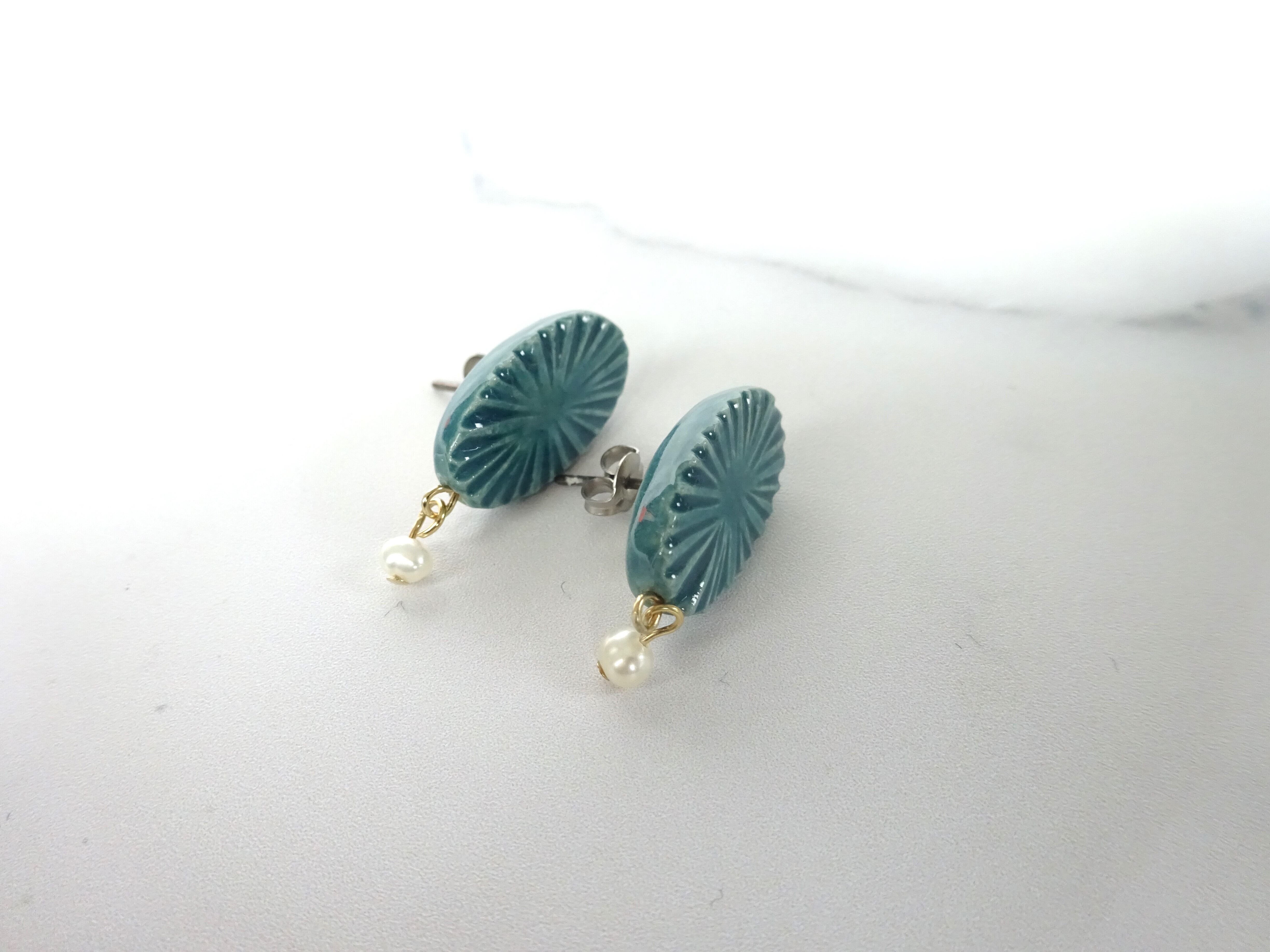 素材:陶、淡水パール、チタンピアス金具 /イヤリング金具