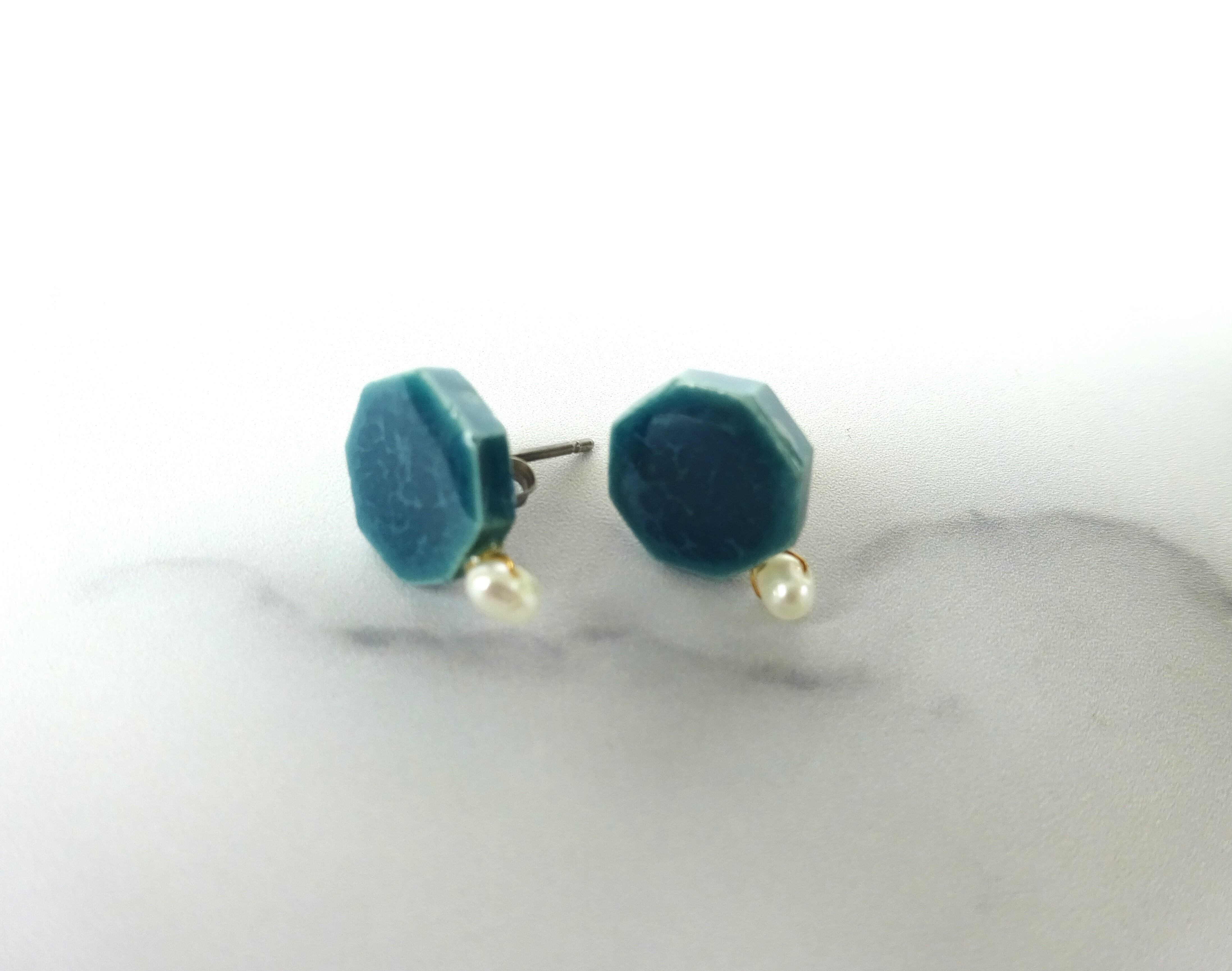 ◇小さな八角 と小さな淡水パールの陶pierce/earring◇