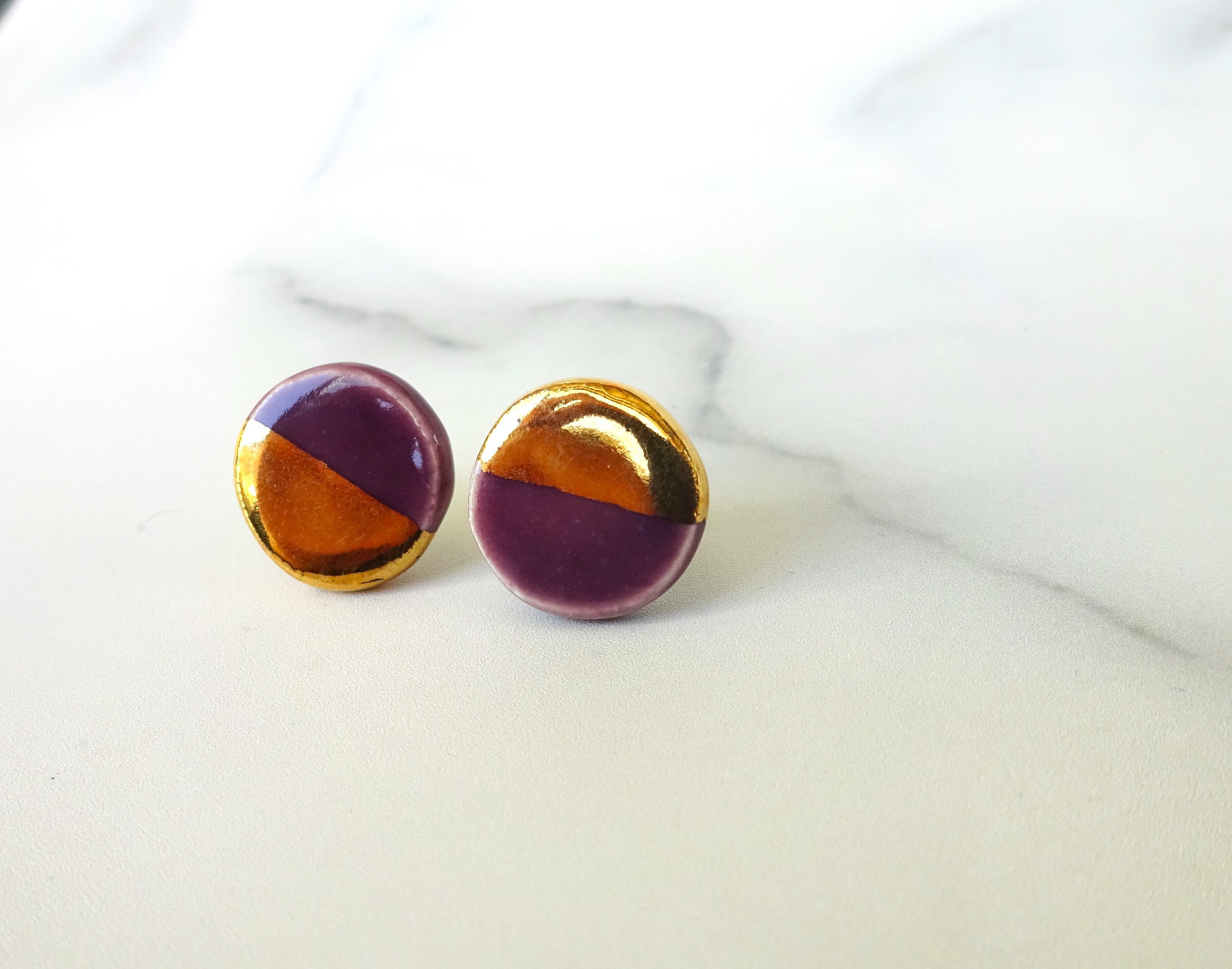 金彩と釉薬のカラーの対比が綺麗な陶のピアスです。